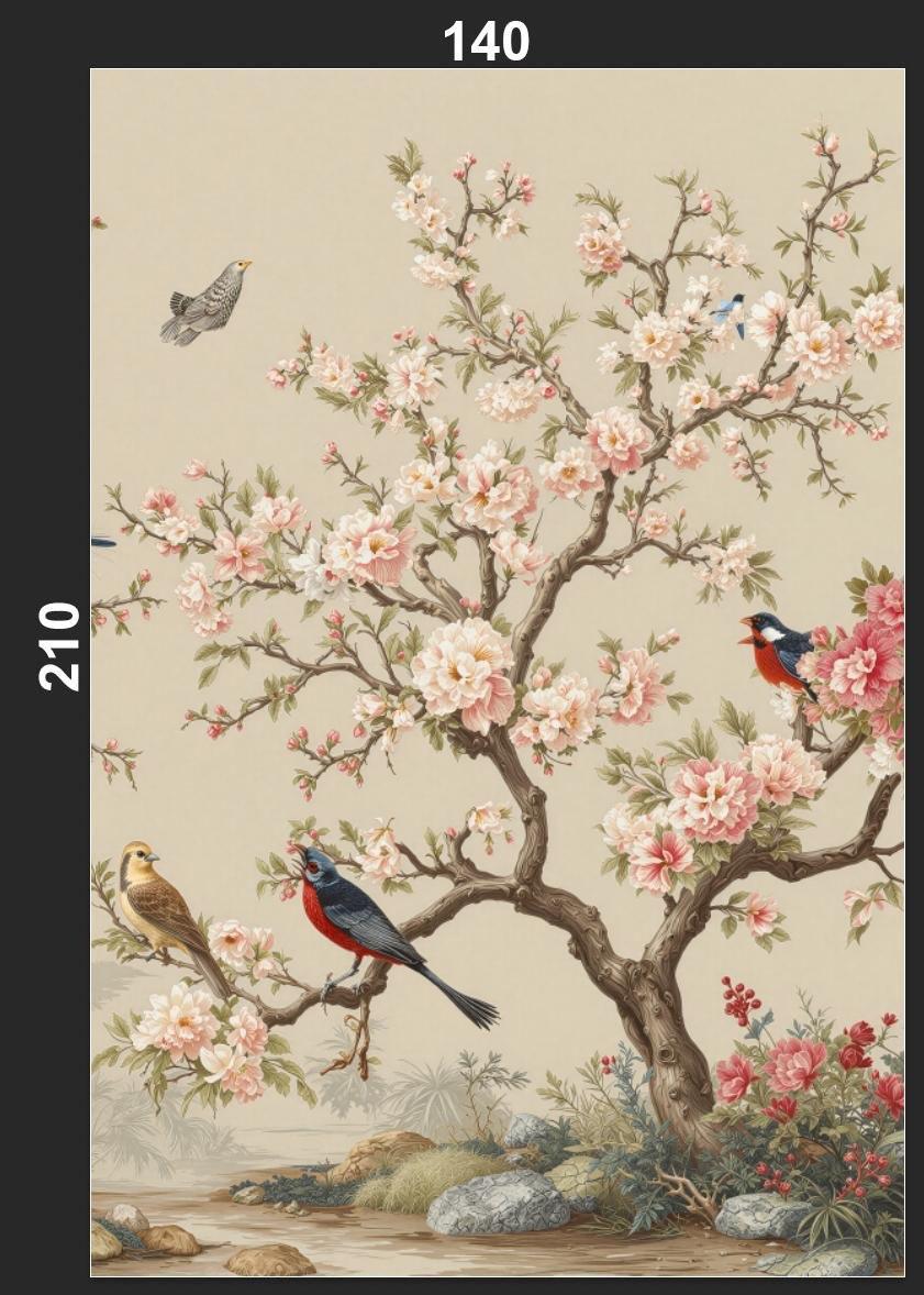 - 140x210h Bahar Dallarında Kuşlar Duvar Kağıdı (Dokusuz) IN0993 (Boylar Tutmuyor) İND., 100-105cm genişliğinde parçalar halinde üretilmektedir.