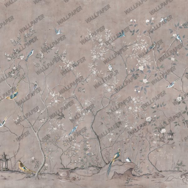 3D Çiçek Dallı Kuşlu Gri Duvar Kağıdı Ürün Bilgisi