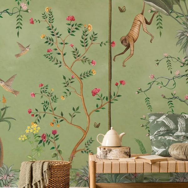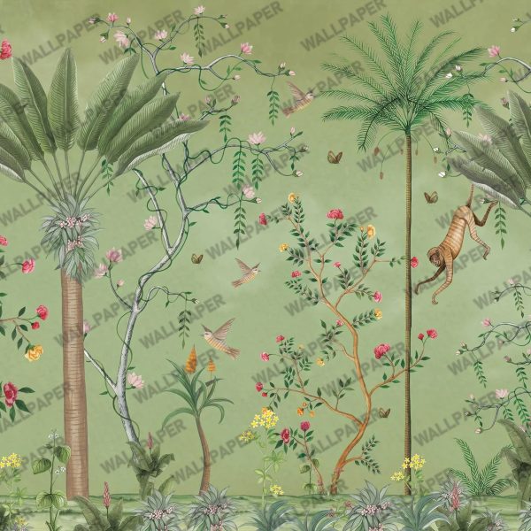 Yeşil Zemin Egzotik Bahçe Duvar Kağıdı