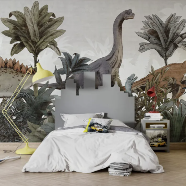 Ormandaki Dinozor Desenli 3D Duvar Kağıdı