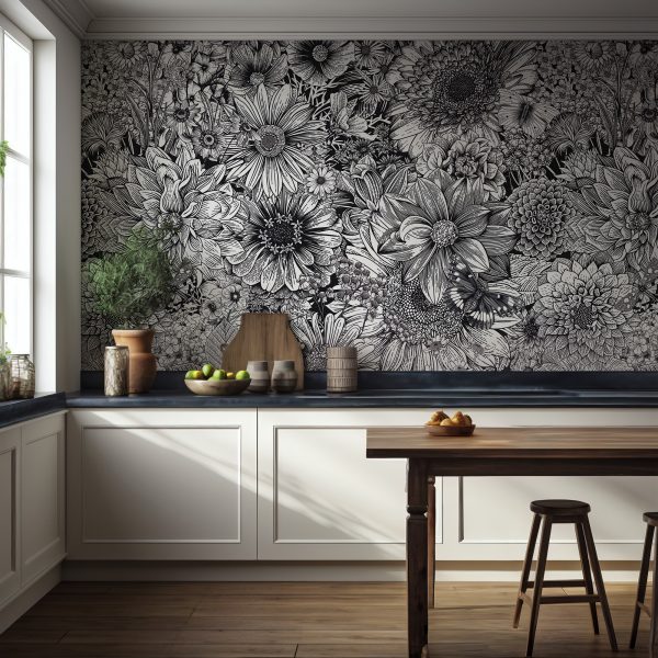 599.00 ₺ / m2Çizim Siyah Beyaz Çiçek Duvar Kağıdı