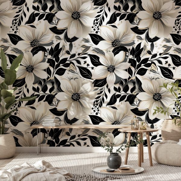 599.00 ₺ / m2Modern Siyah Beyaz Çiçek Duvar Kağıdı