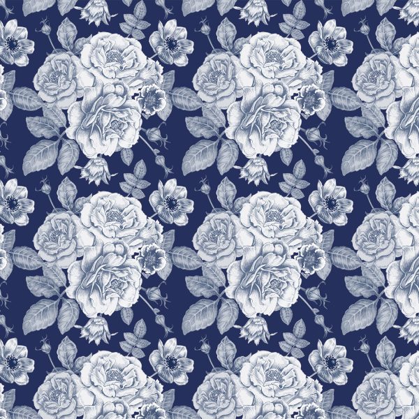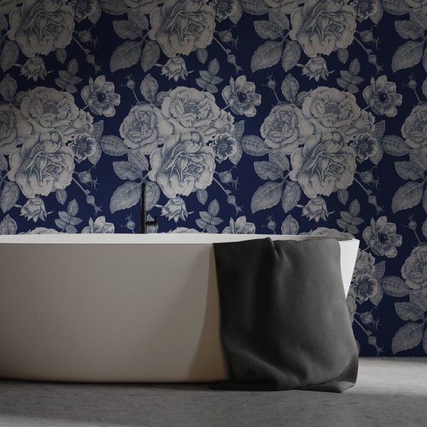 599.00 ₺ / m2Lacivert Zemin Beyaz Gül Desenli Duvar Kağıdı
