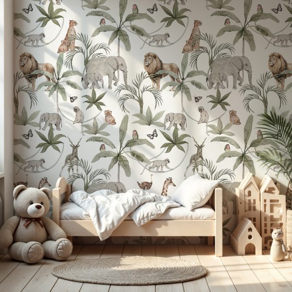 Safari Hayvanlı Çocuk Odası Duvar Kağıdı