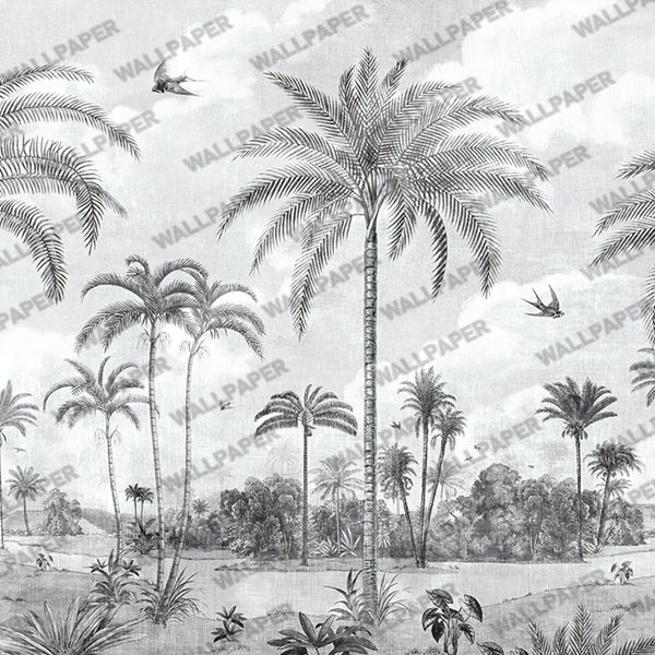 Tropikal Ağaçlı 3D Duvar Kağıdı