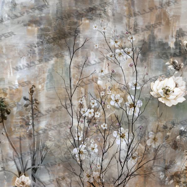 Kahve Tonlarında Çiçek Desenli 3D Duvar Kağıdı