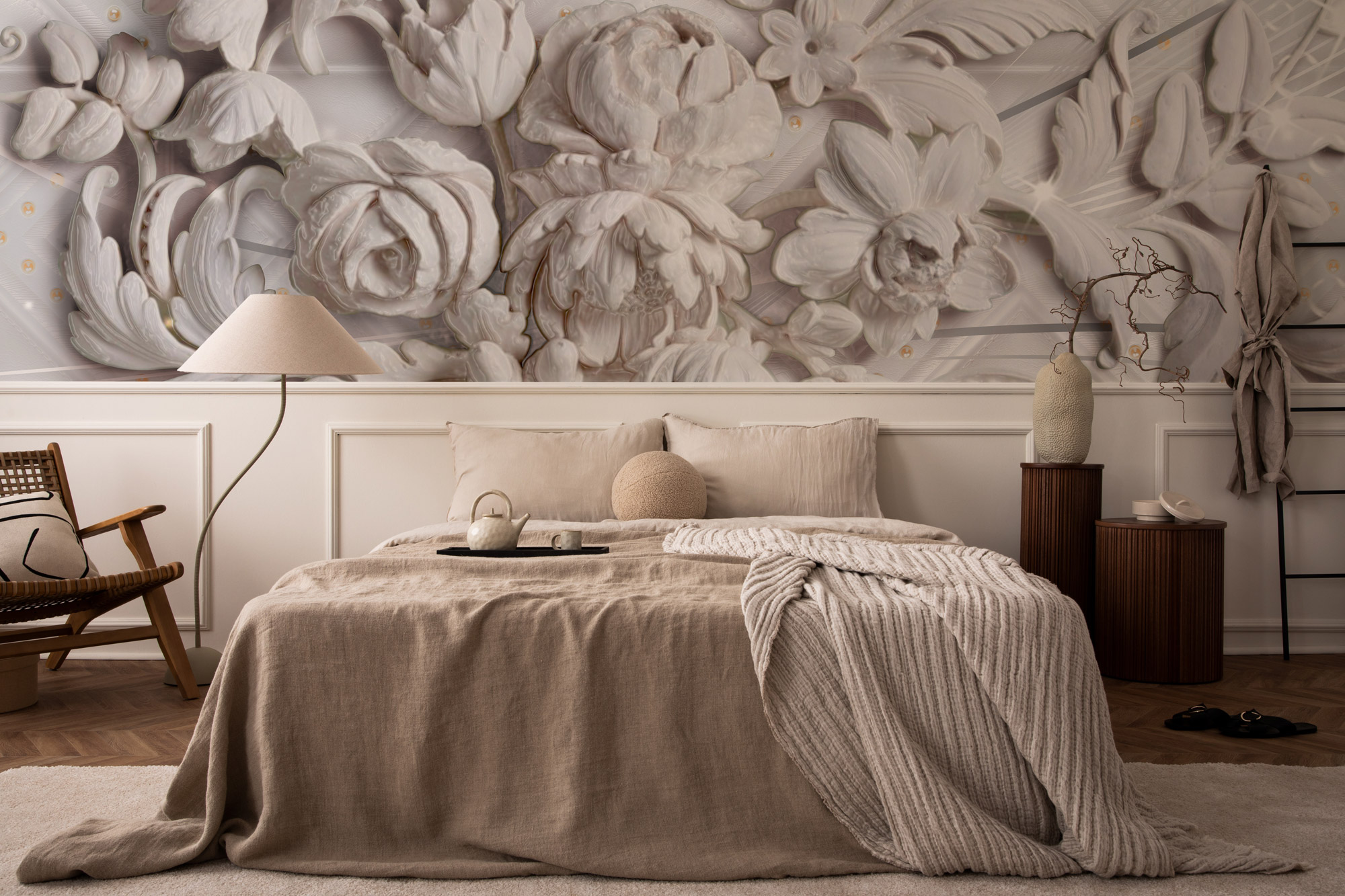 406x254h 3D Geometrik Desenler Üzerindeki Çiçekler Duvar Kağıdı MUR7090 IND Folyo (Kendinden Yapışkanlı) üretimi, uygulanmasını isteyeceğiniz boyut ve konumuna uygun olarak talepleriniz doğrultusunda size özel imal edilir.