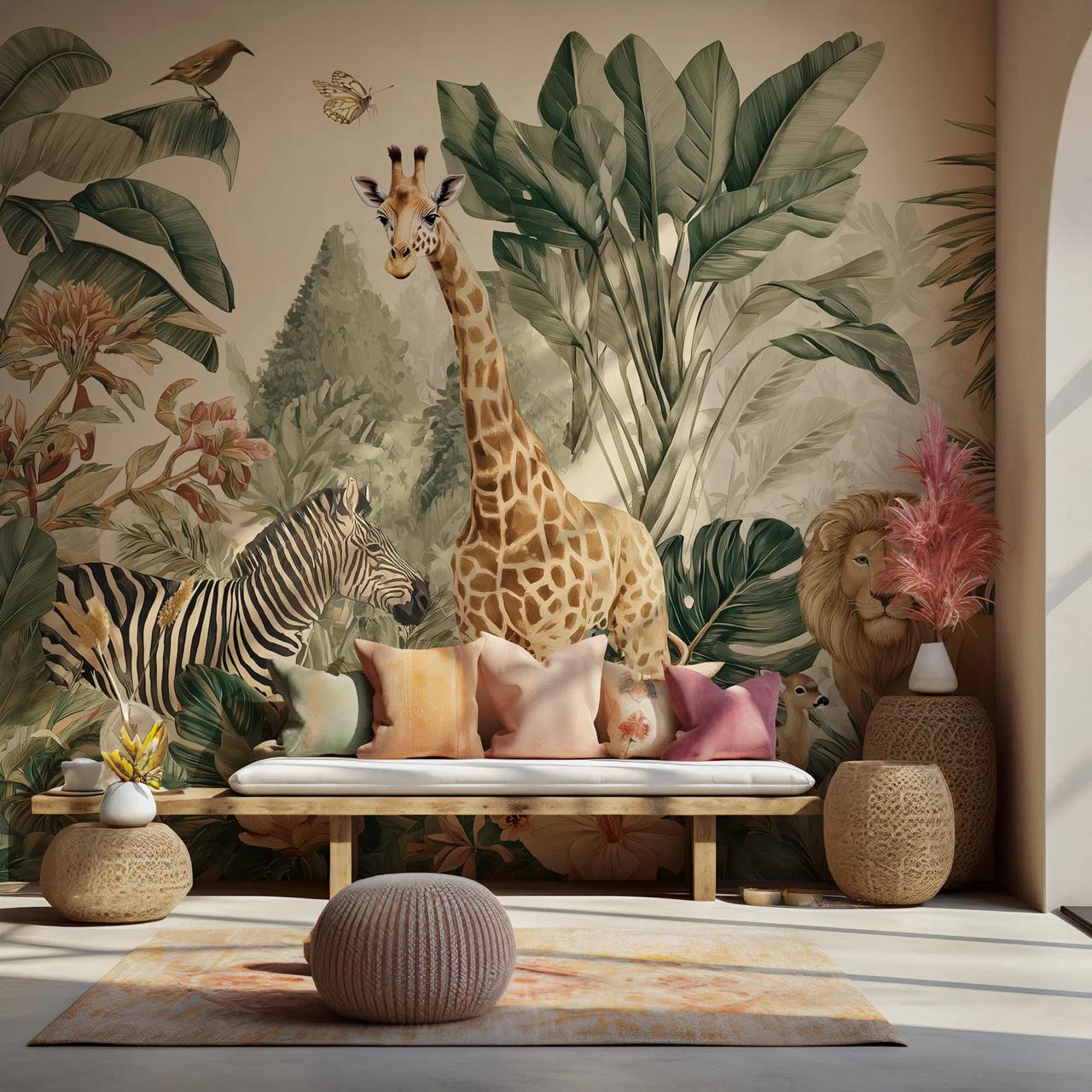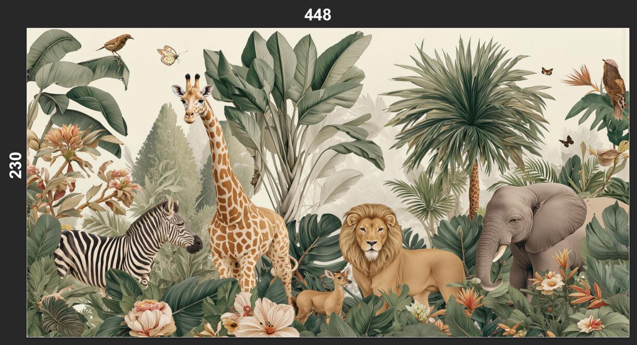 448x230h Yeşil Orman Hayvanlar Duvar Kağıdı (Kendinden Yapışkanlı) YZ1007 (Bindirmelerde Boya Lekesi) İND. üretimi, uygulanmasını isteyeceğiniz boyut ve konumuna uygun olarak talepleriniz doğrultusunda size özel imal edilir.