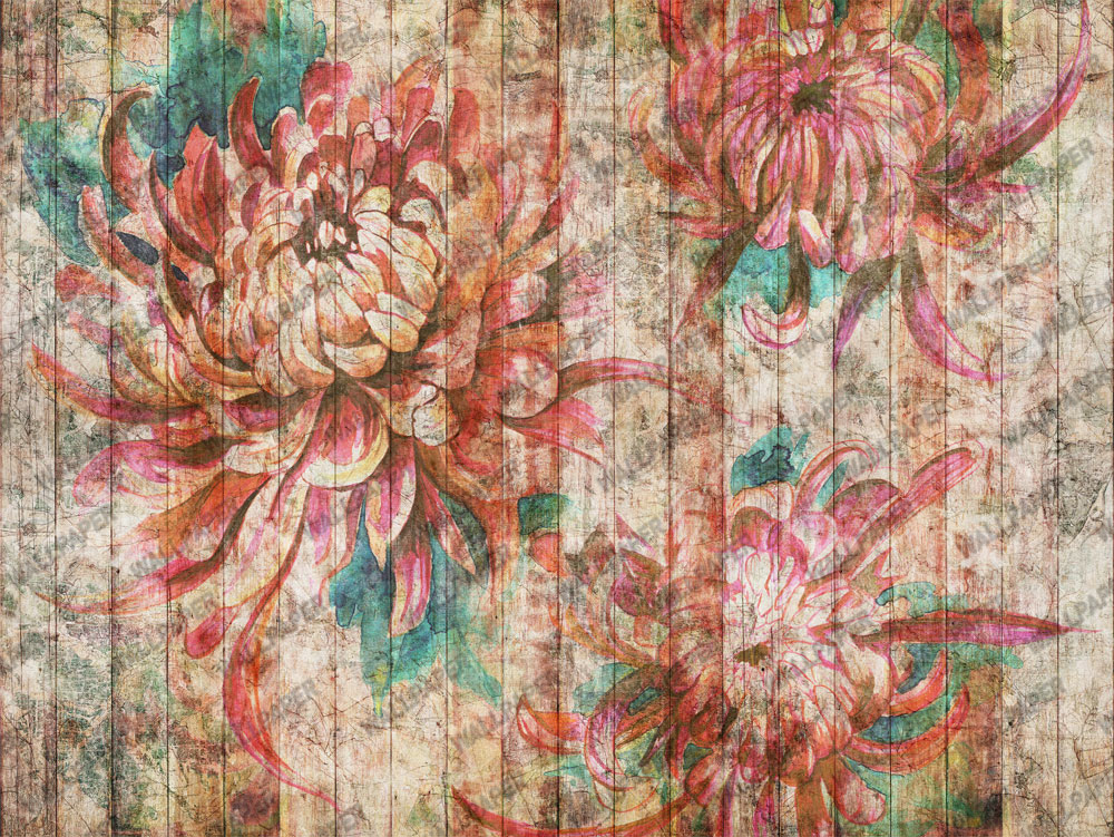 • Ahşap Zeminli Pembe Renkli Çiçekler 3D Duvar Kağıdı, 100-105cm genişliğinde parçalar halinde üretilmektedir.