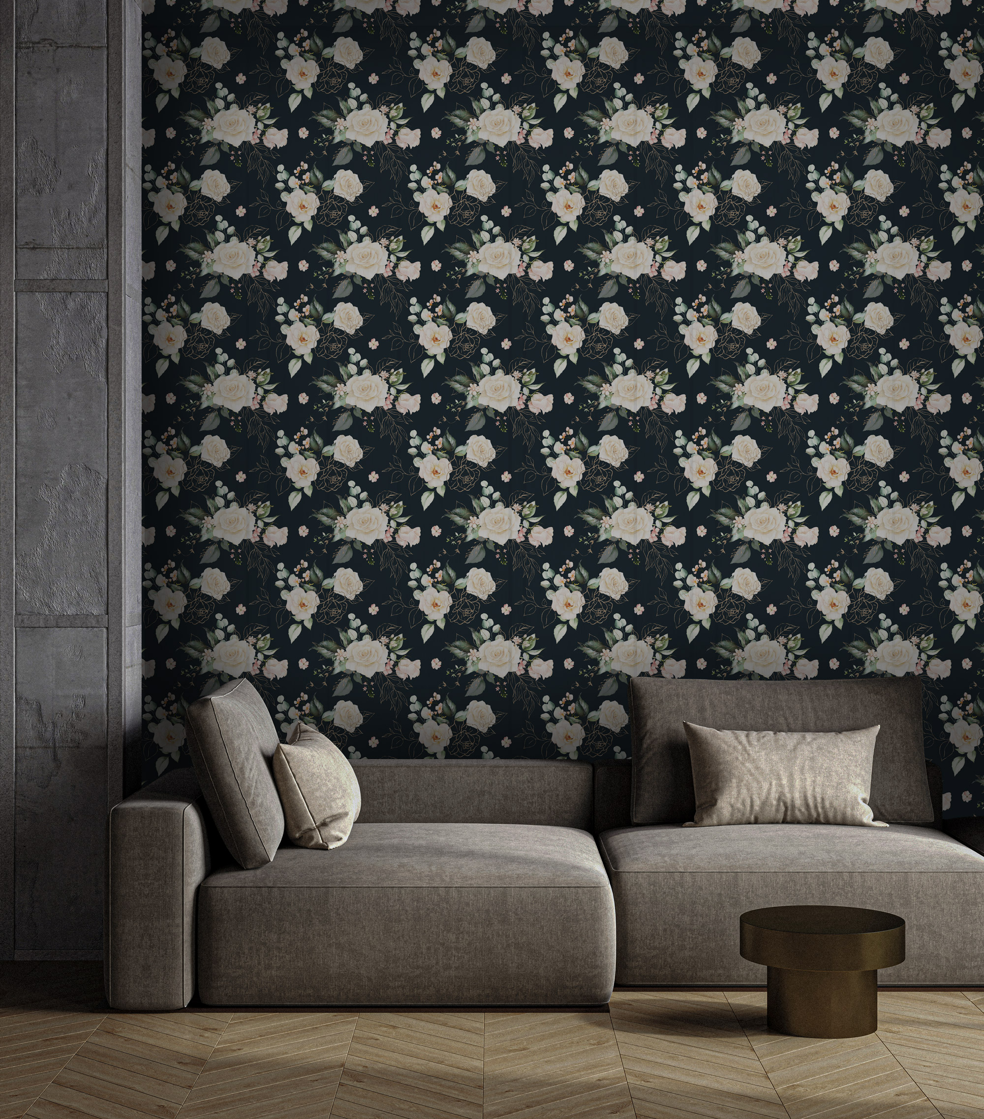 Altın Detaylı Beyaz Gül Desenli Duvar Kağıdı Ürün Bilgisi
