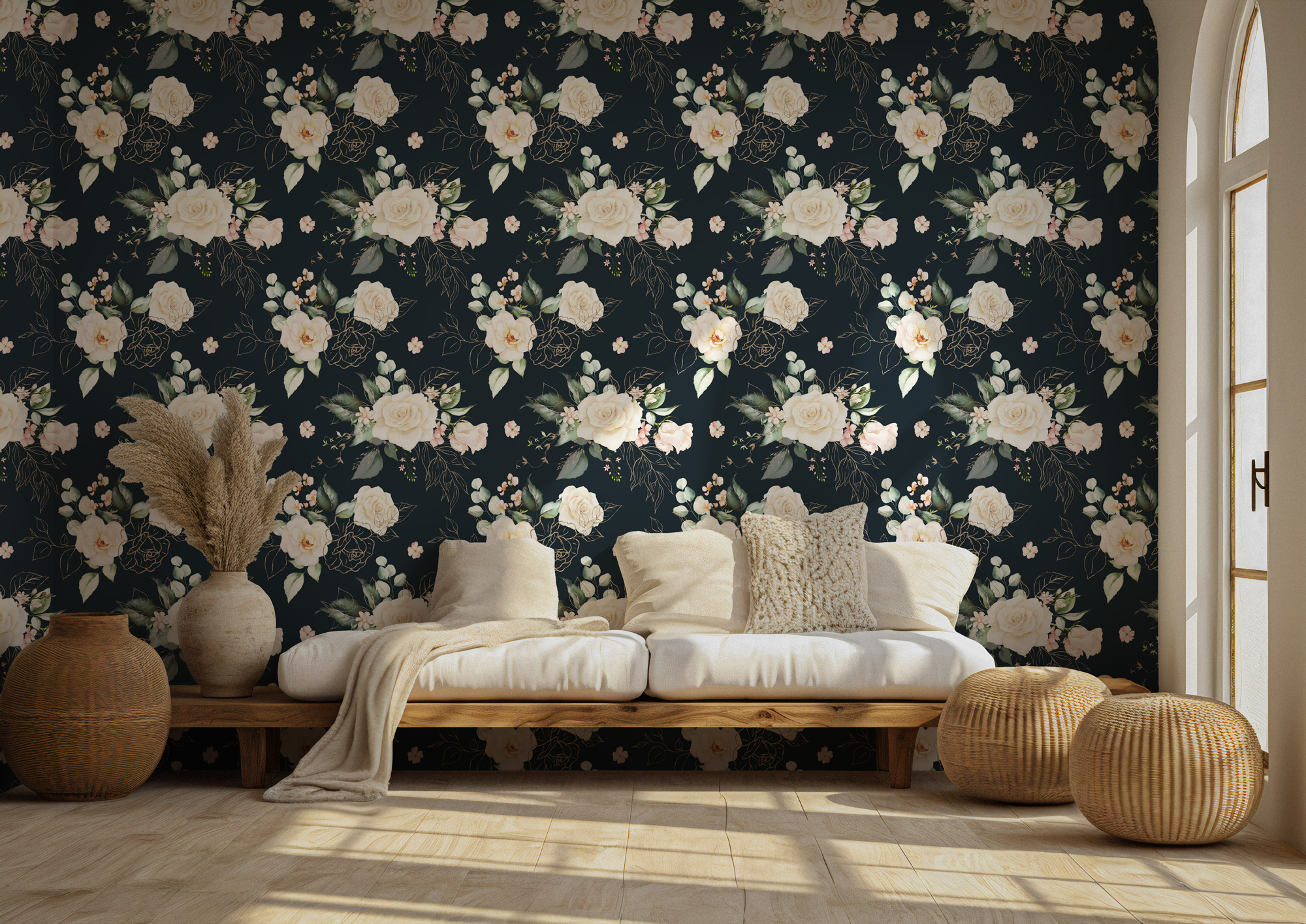 Altın Detaylı Beyaz Gül Desenli Duvar Kağıdı üretimi, uygulanmasını isteyeceğiniz boyut ve konumuna uygun olarak talepleriniz doğrultusunda size özel imal edilir.