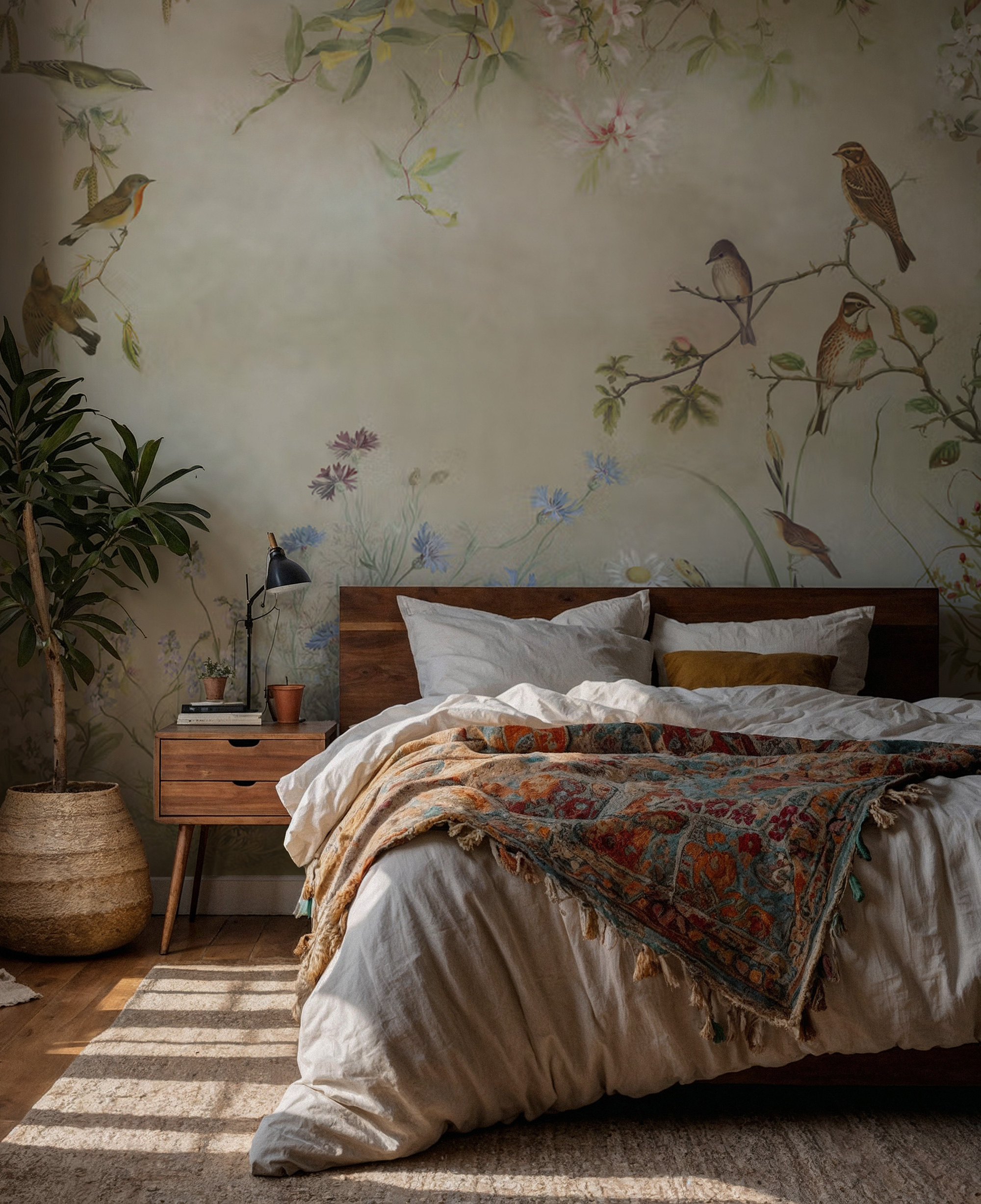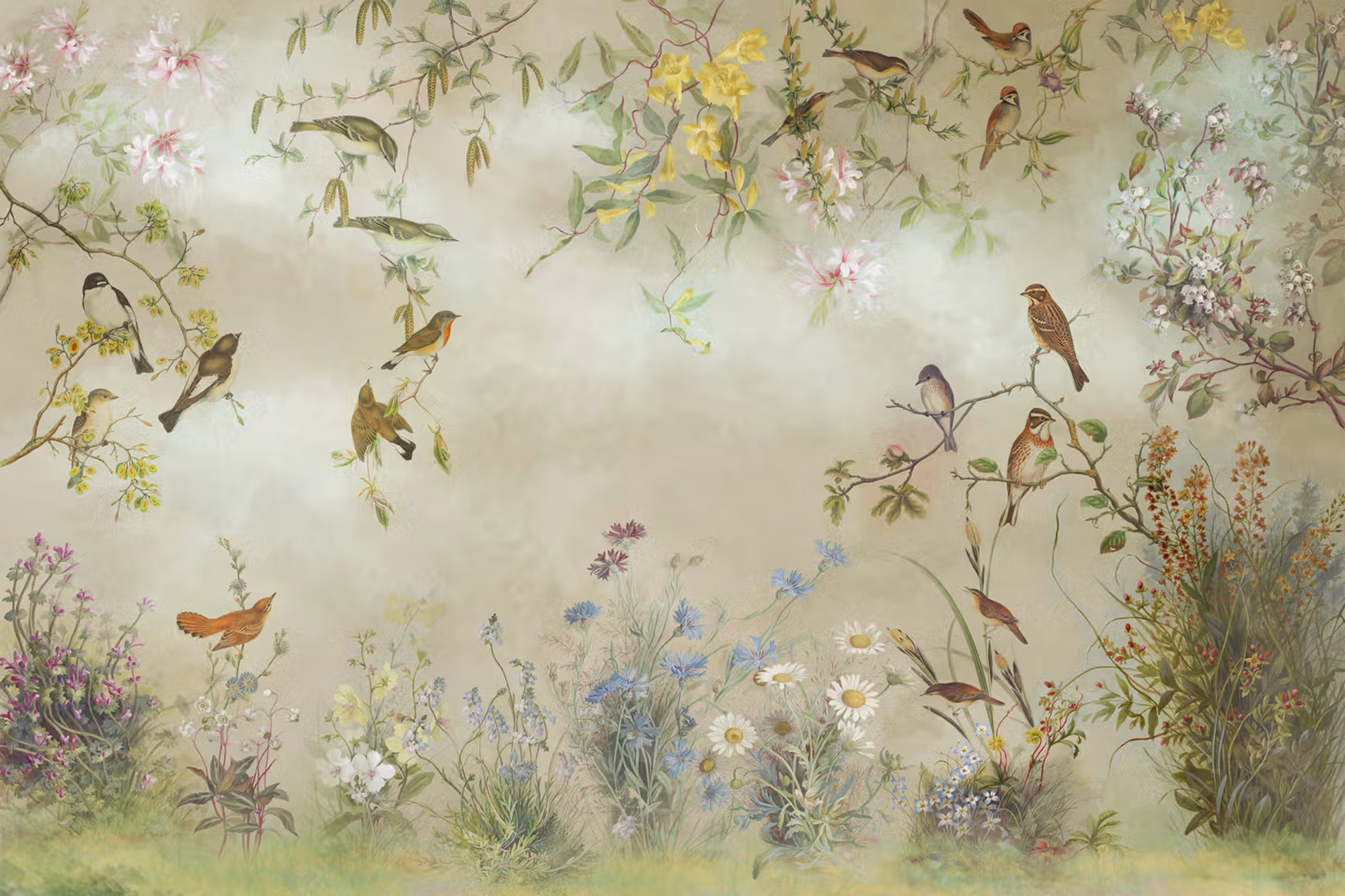 Bahar Manzaralı Kuşlar Duvar Kağıdı Ürün Bilgisi