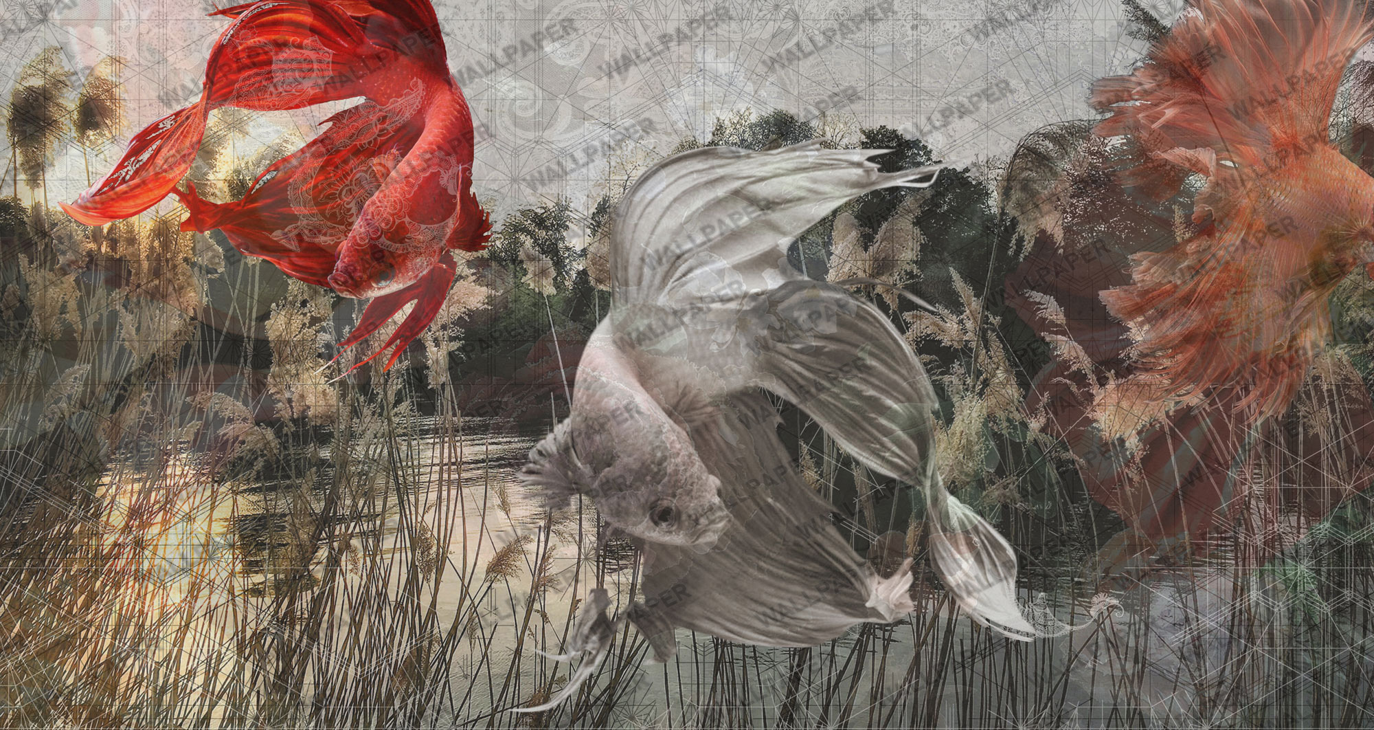 Balıklar ve Göl Kenarı Kolaj Duvar Kağıdı Ürün Bilgisi
