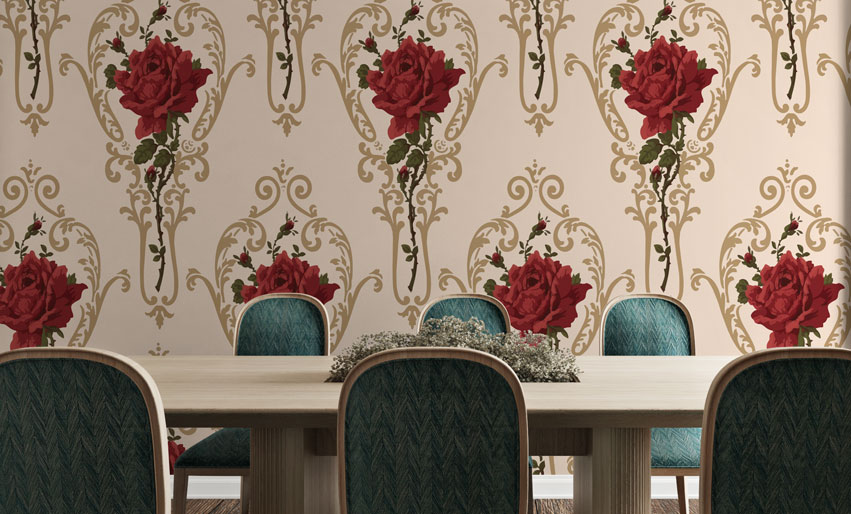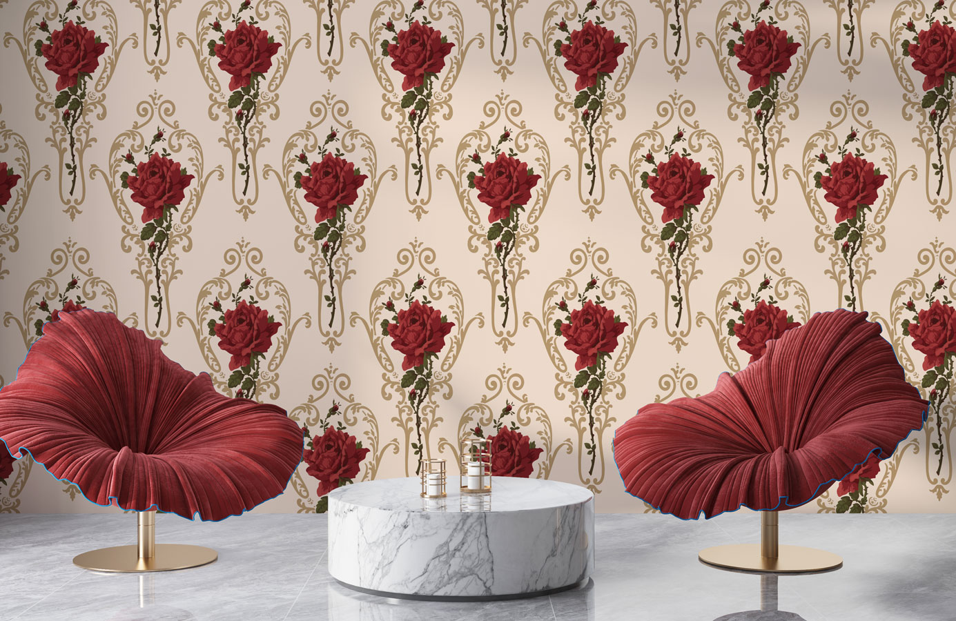 Barok Desenli Kırmızı Güller Duvar Kağıdı Ürün Bilgisi