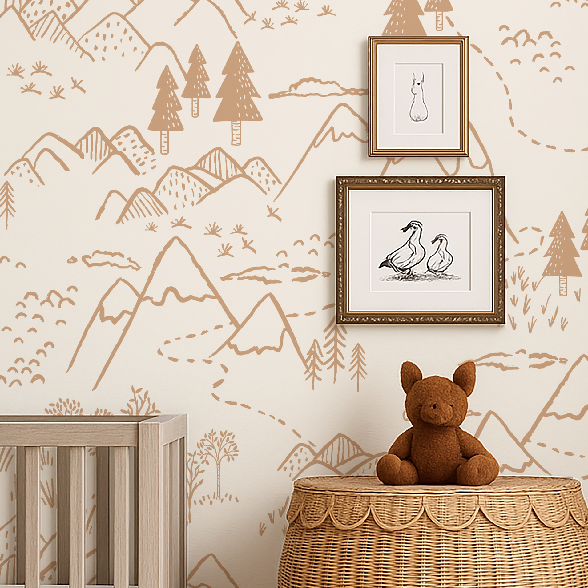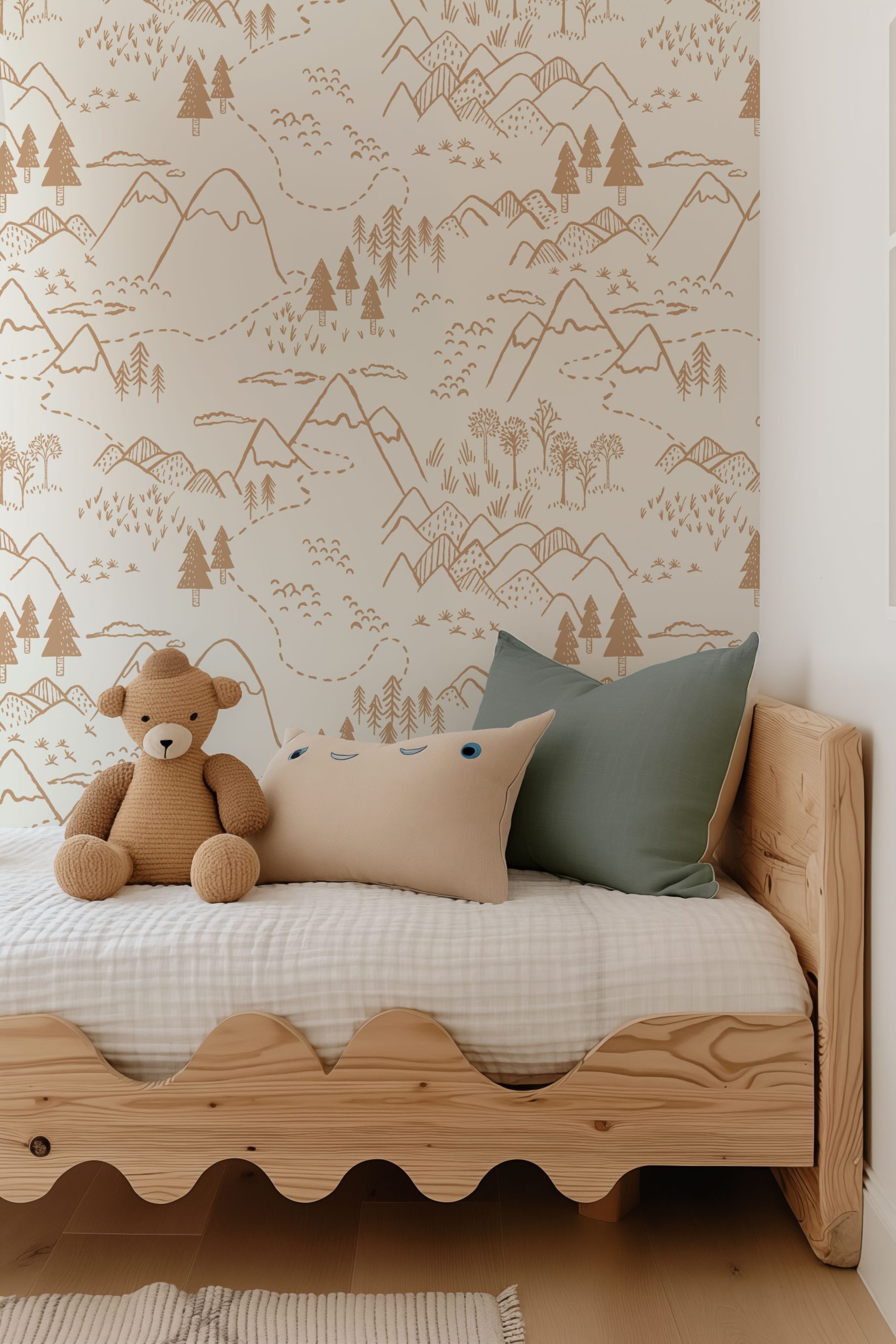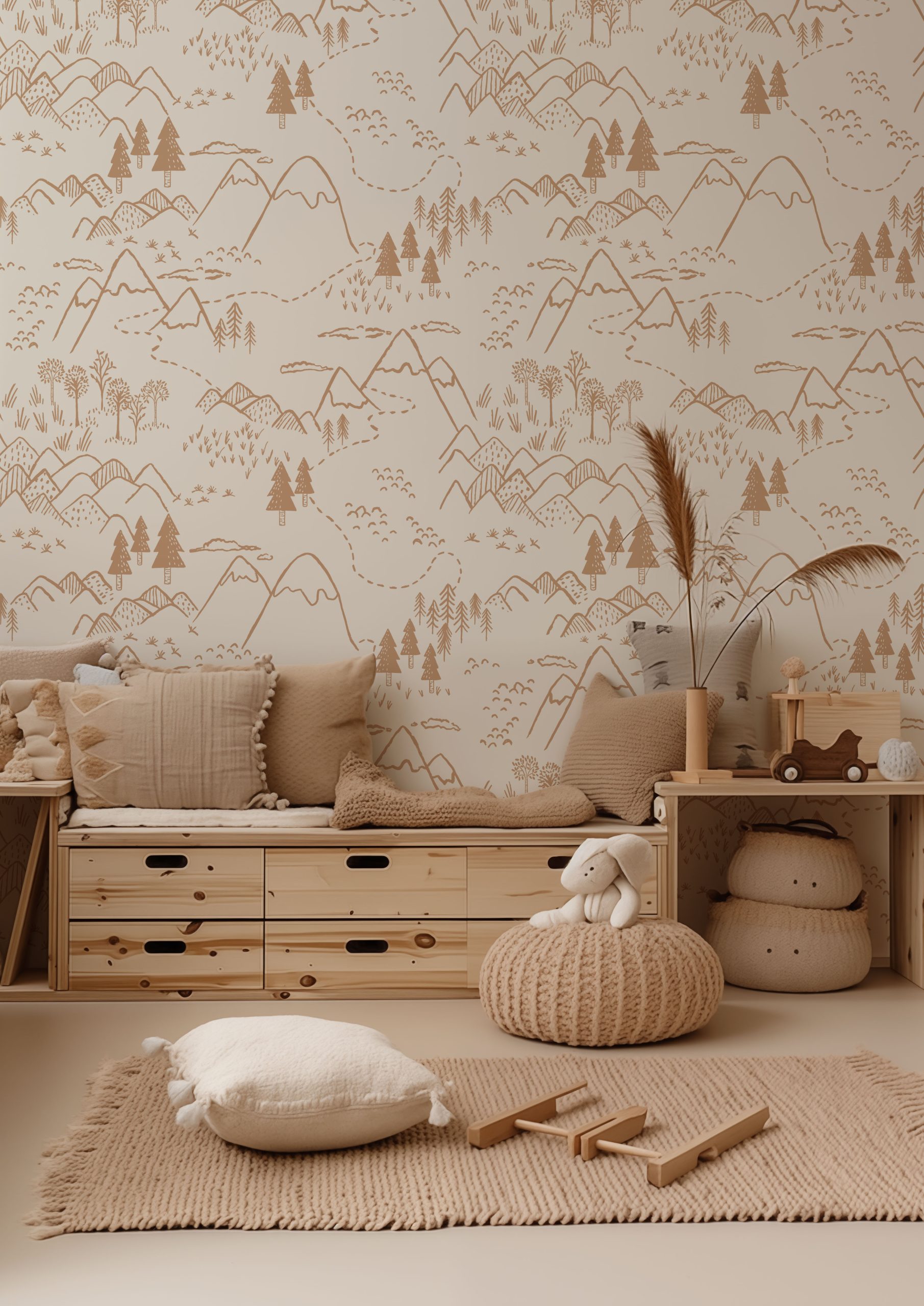 - Bej Dağ Zirveleri Haritası Duvar Kağıdı, 100-105cm genişliğinde parçalar halinde üretilmektedir.