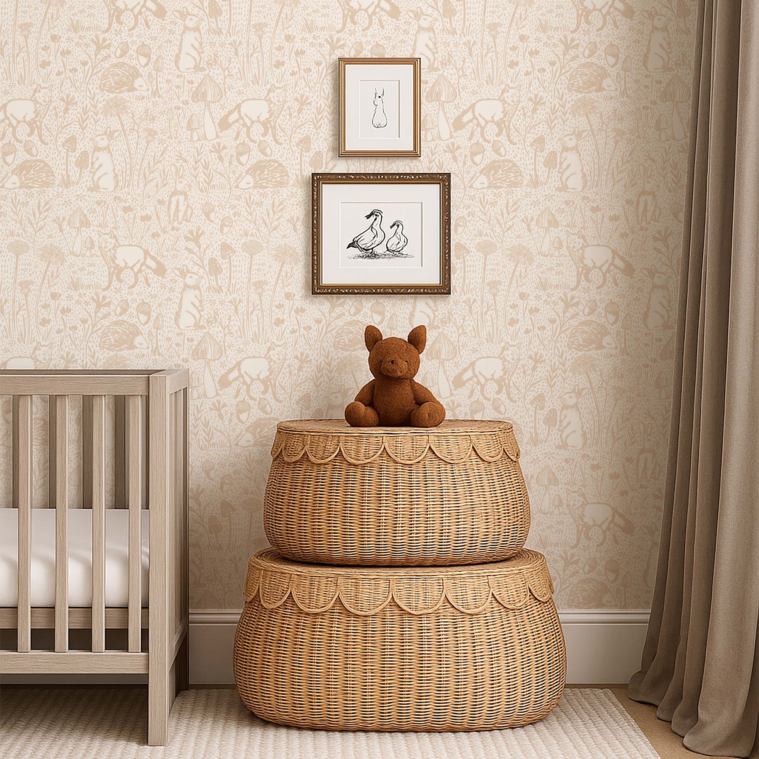 Bej Orman Dostları Tilki ve Tavşanlı Duvar Kağıdı üretimi , uygulanmasını isteyeceğiniz boyut ve konumuna uygun olarak talepleriniz doğrultusunda size özel imal edilir.