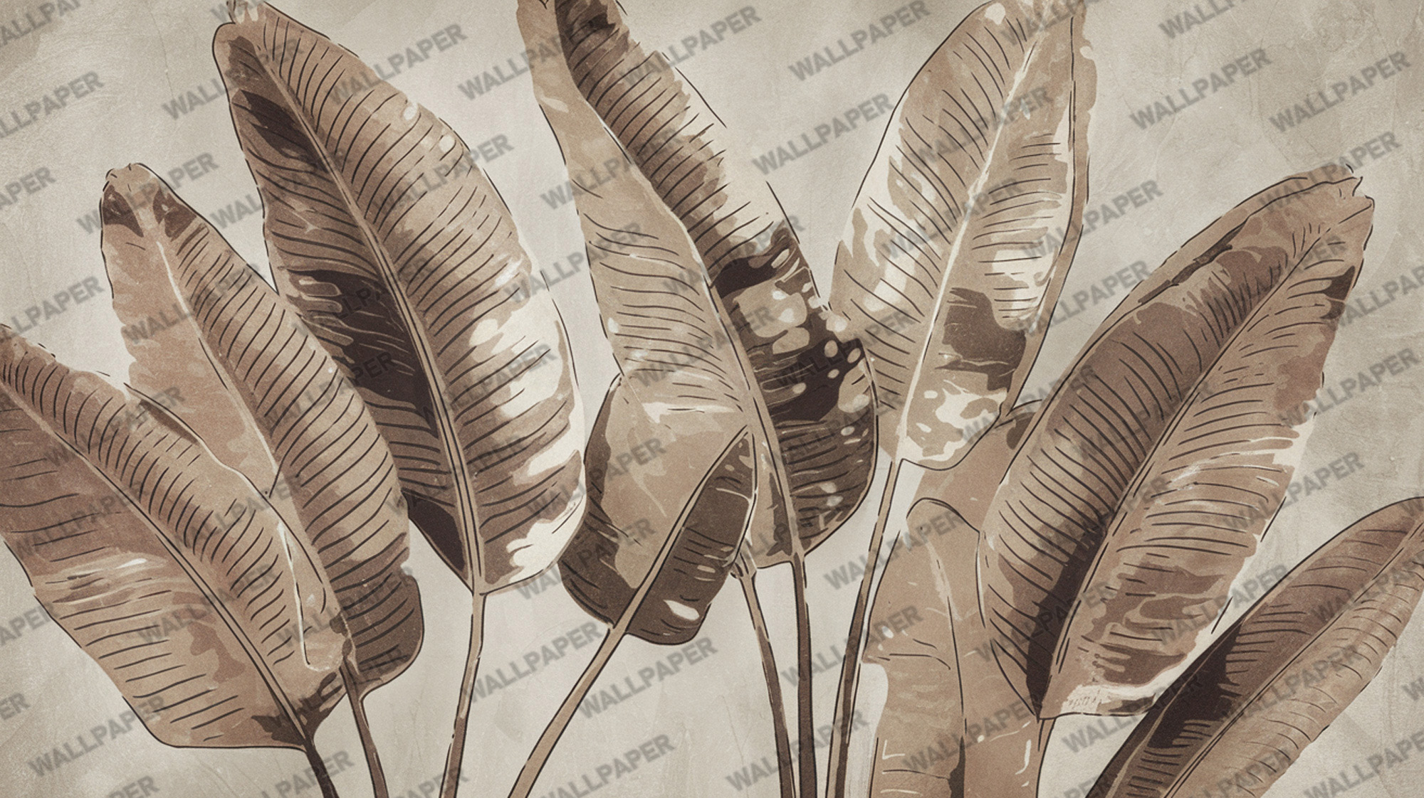 Bej Tonlarında Muz Yaprakları Duvar Kağıdı , en yüksek kalitede (high pass) detay zenginliği gözetilerek, en doğru renklerde ürünün üretimi sağlanır.