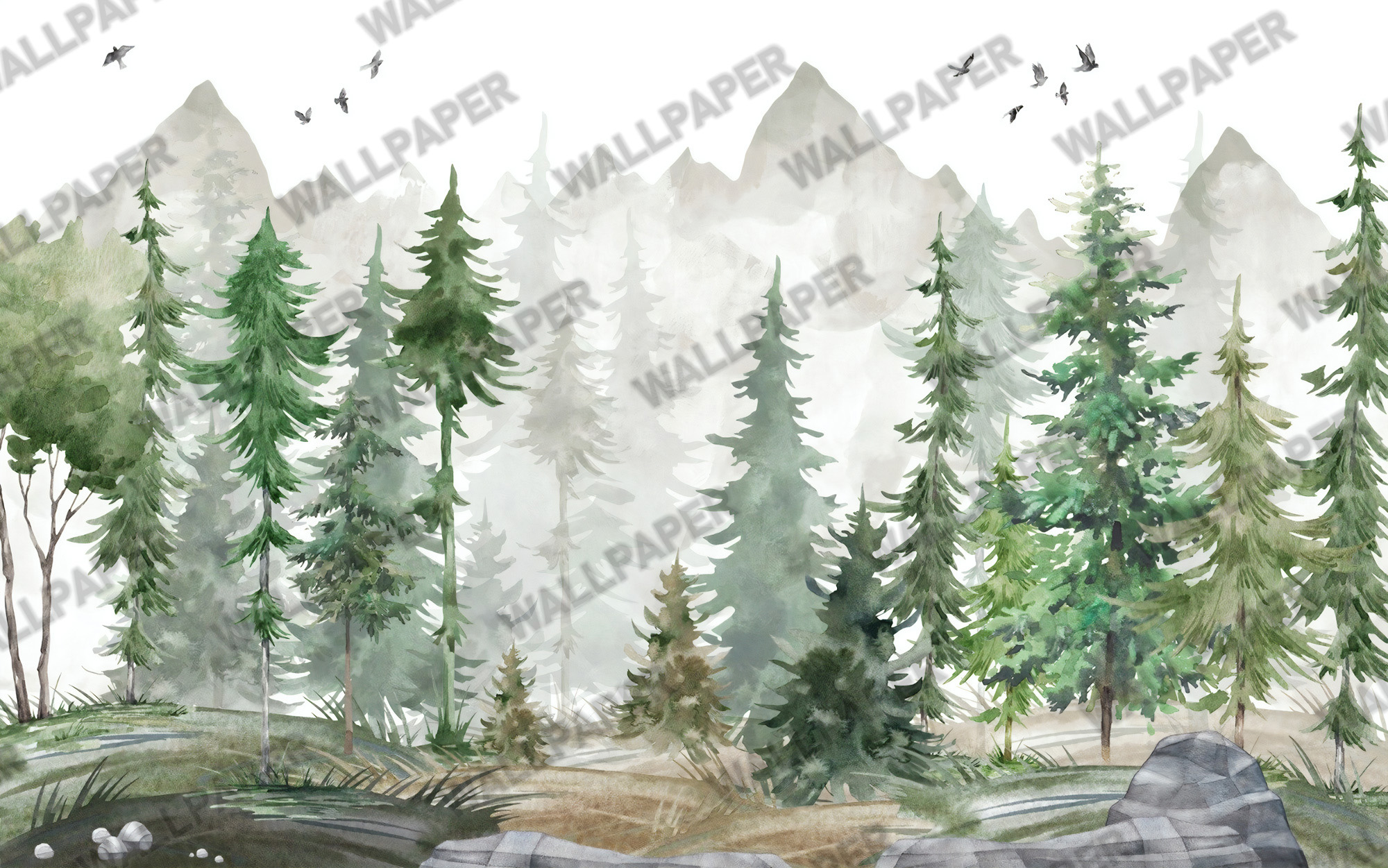 Çam Ağaçlı Sulu Boya Efektli Duvar Kağıdı Ürün Bilgisi