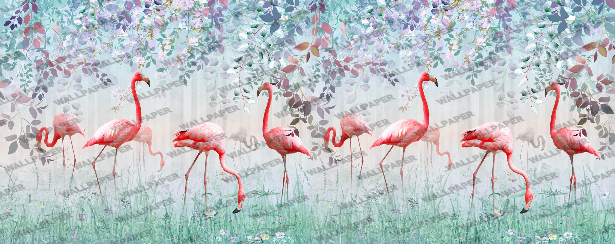 - Çiçek Üzerindeki Flamingolar 3D Duvar Kağıdı , 100-105cm genişliğinde parçalar halinde üretilmektedir.