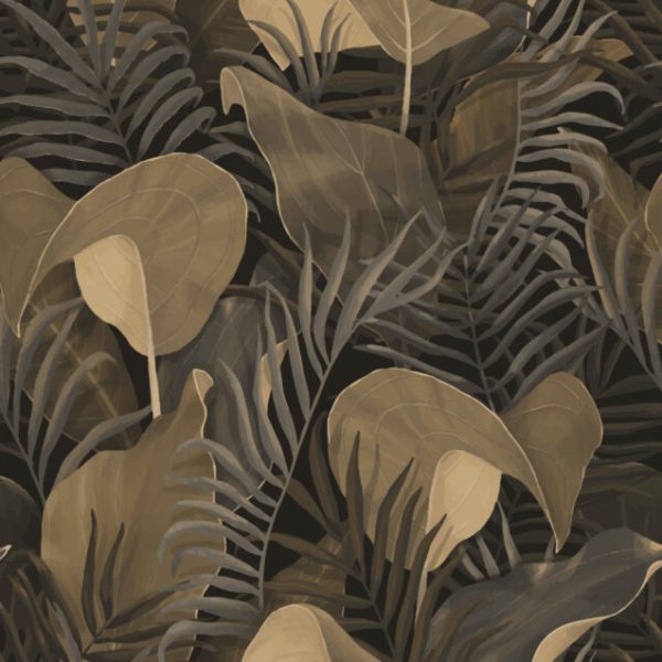 Yukarıdan Sarkan Koyu Zeminli Yapraklar 3D Duvar Kağıdı