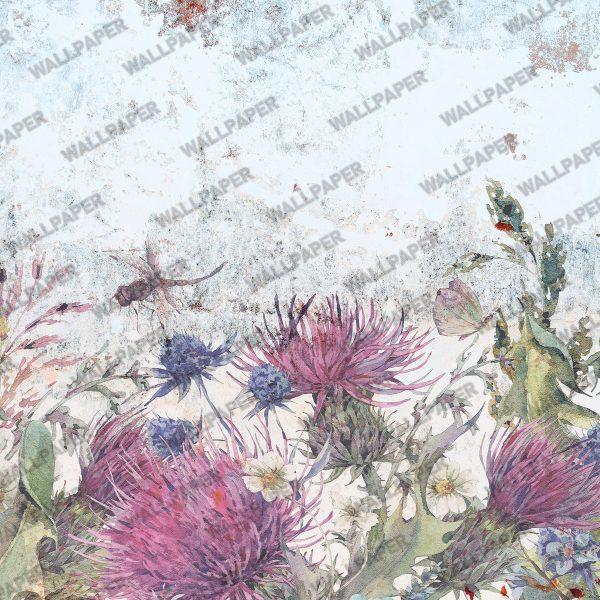 Eskitmeli Aşağıdan Sarkılmış Çiçek Desenli Duvar Kağıdı