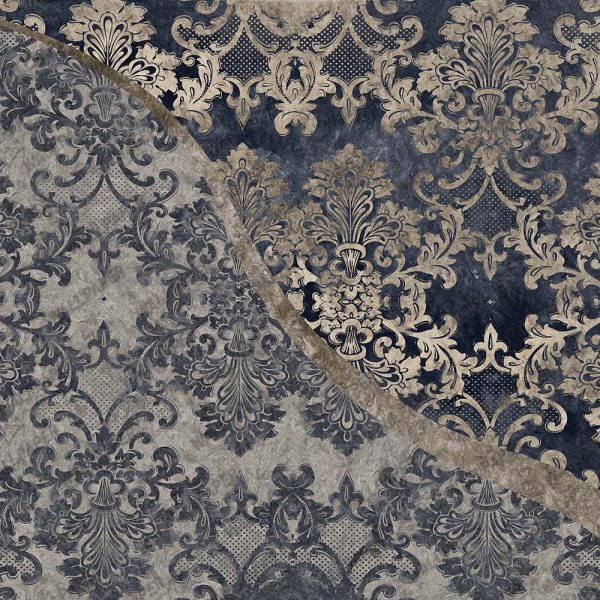 Barok Desenli Lacivert Duvar Kağıdı