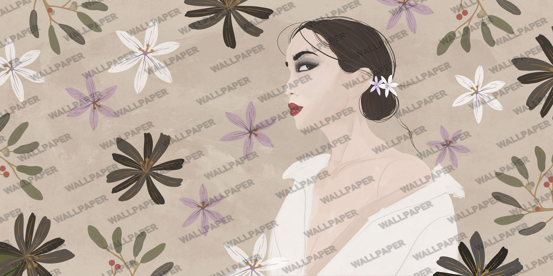 Çiçekli Bayan Figürlü 3D Duvar Kağıdı , en yüksek kalitede (high pass) detay zenginliği gözetilerek, en doğru renklerde ürünün üretimi sağlanır.
