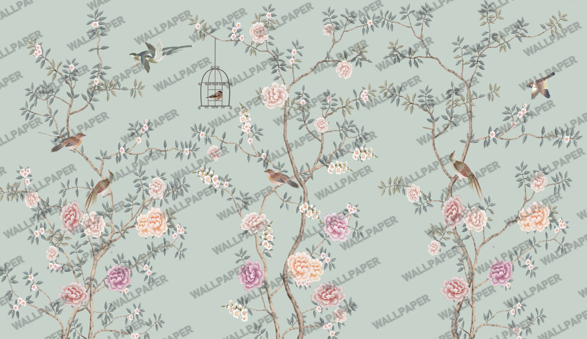 Daldaki Kuşlar Yeşil Tonlu 3D Duvar Kağıdı Ürün Bilgisi