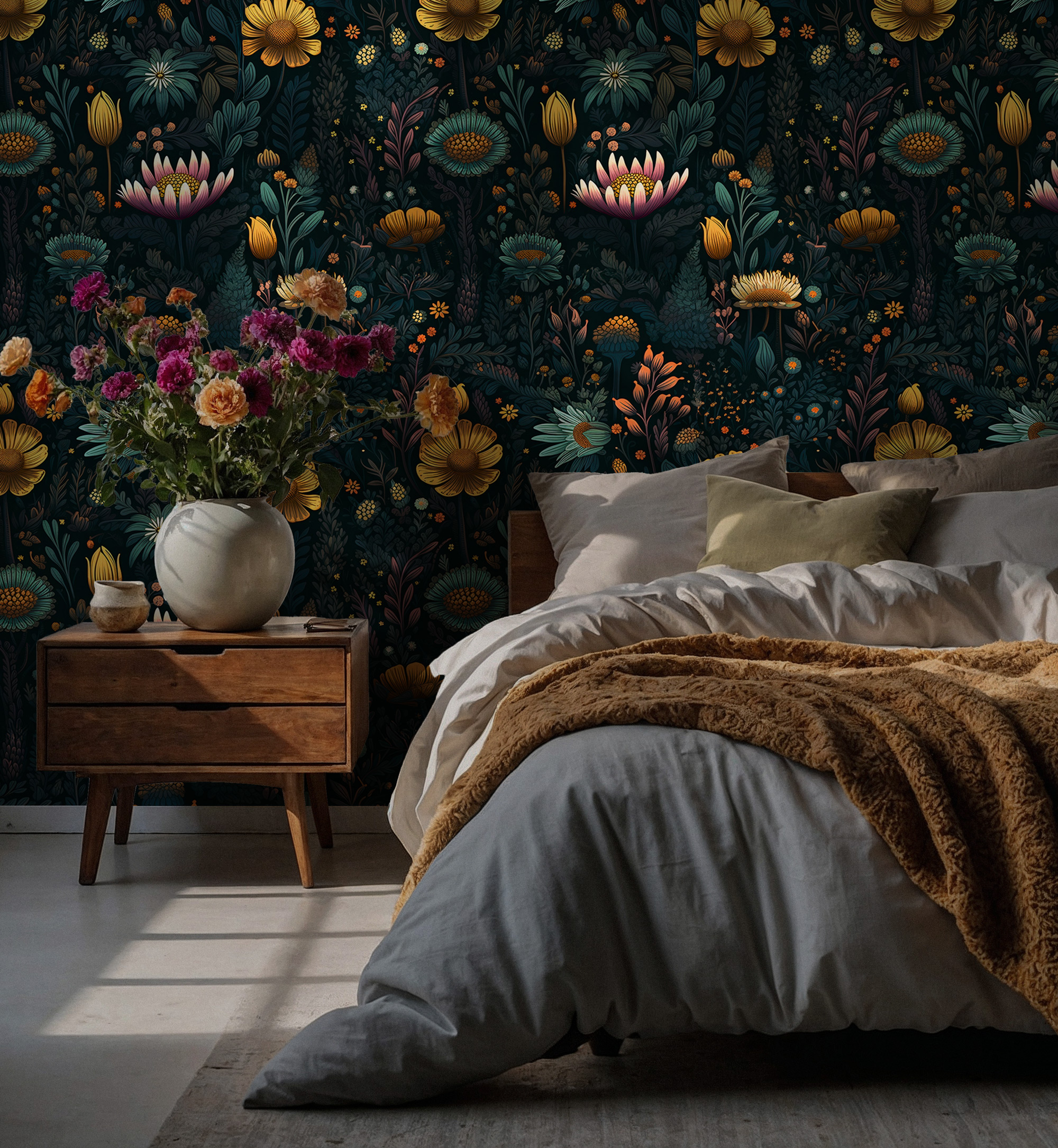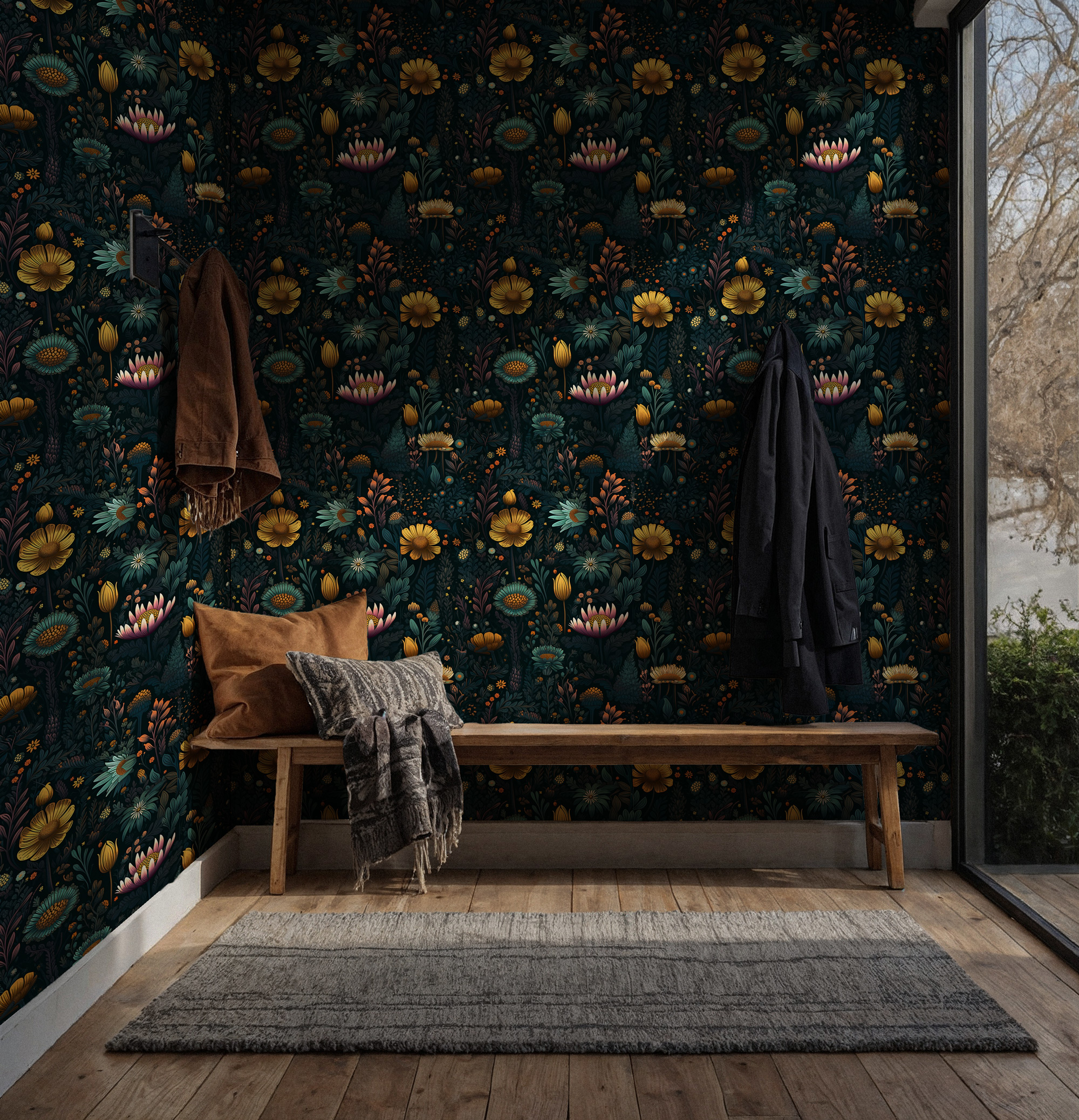 Dekoratif Canlı Renkli Botanik Duvar Kağıdı üretimi, uygulanmasını isteyeceğiniz boyut ve konumuna uygun olarak talepleriniz doğrultusunda size özel imal edilir.