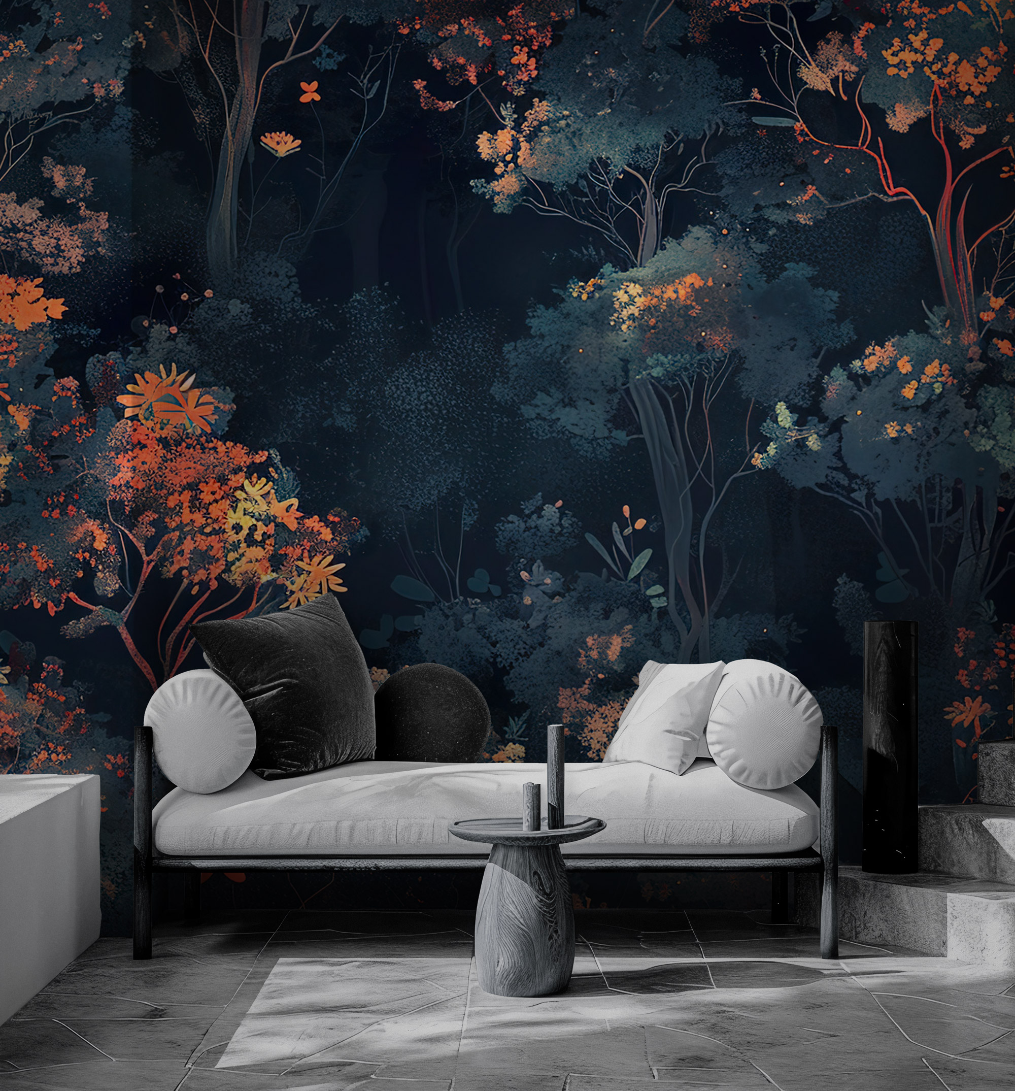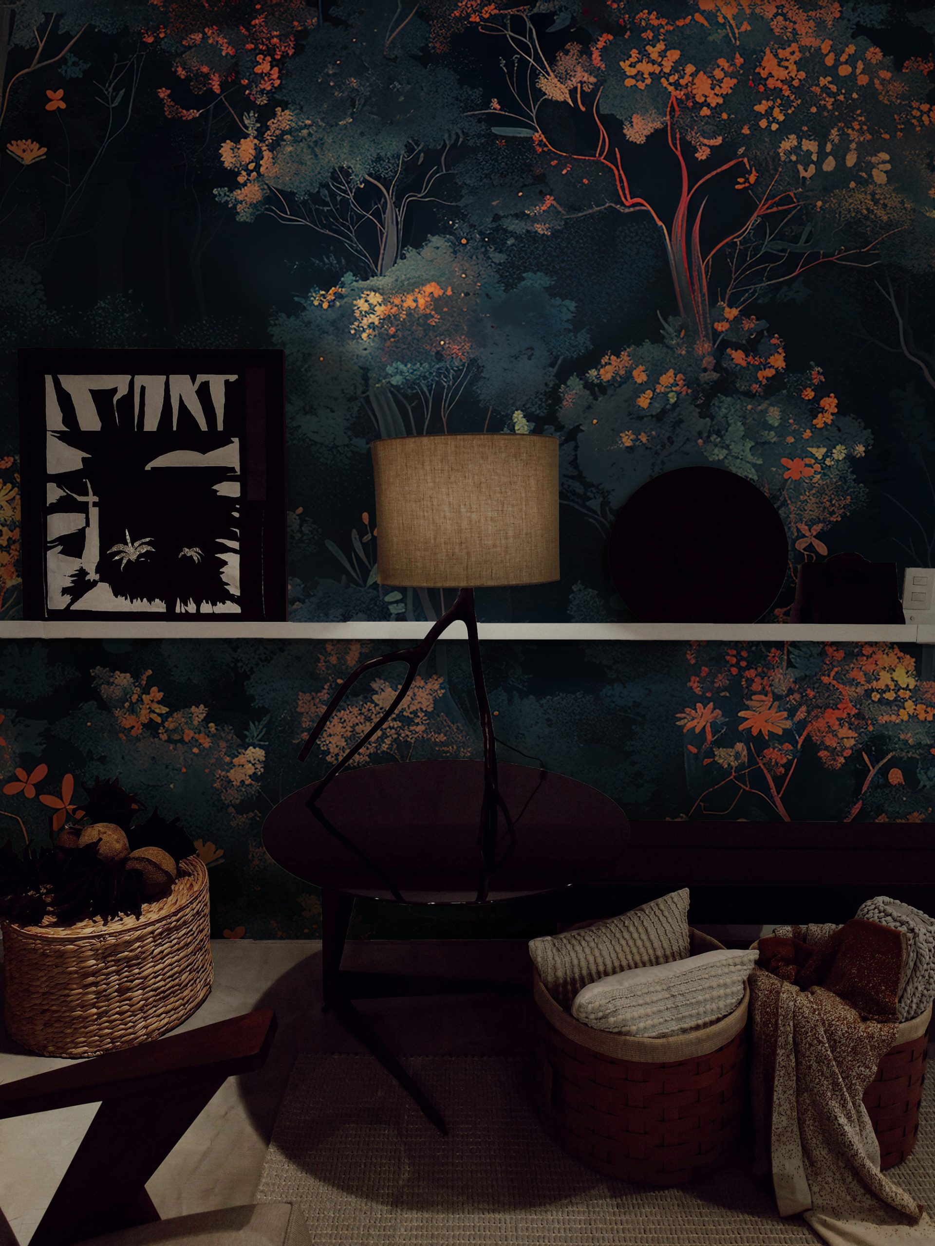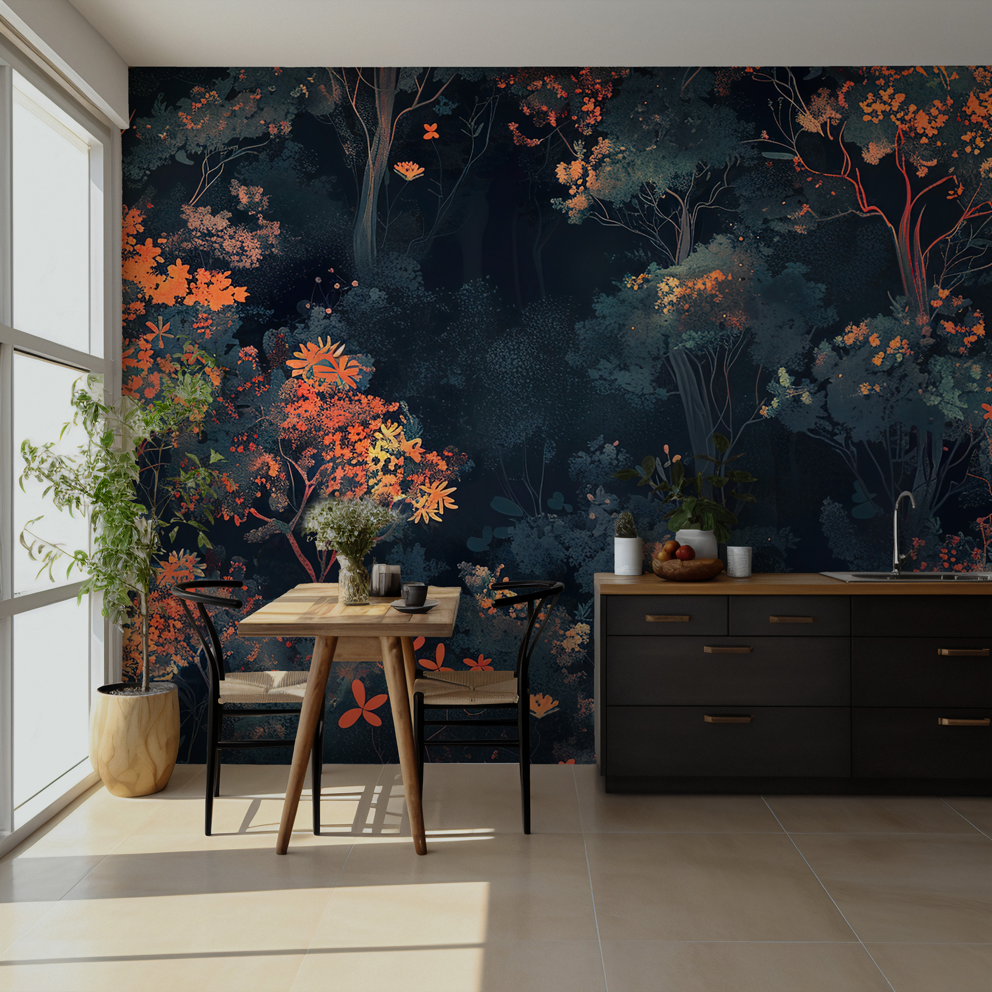 Gece Ormanı Temalı Sanatsal Duvar Kağıdı üretimi, uygulanmasını isteyeceğiniz boyut ve konumuna uygun olarak talepleriniz doğrultusunda size özel imal edilir.