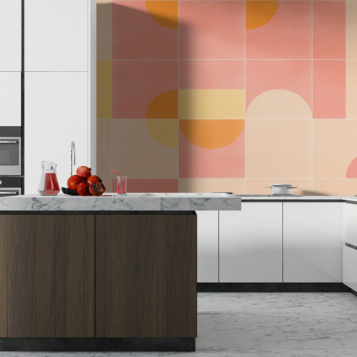 • Geometrik Pembe Blok Duvar Kağıdı , 100-105cm genişliğinde parçalar halinde üretilmektedir.