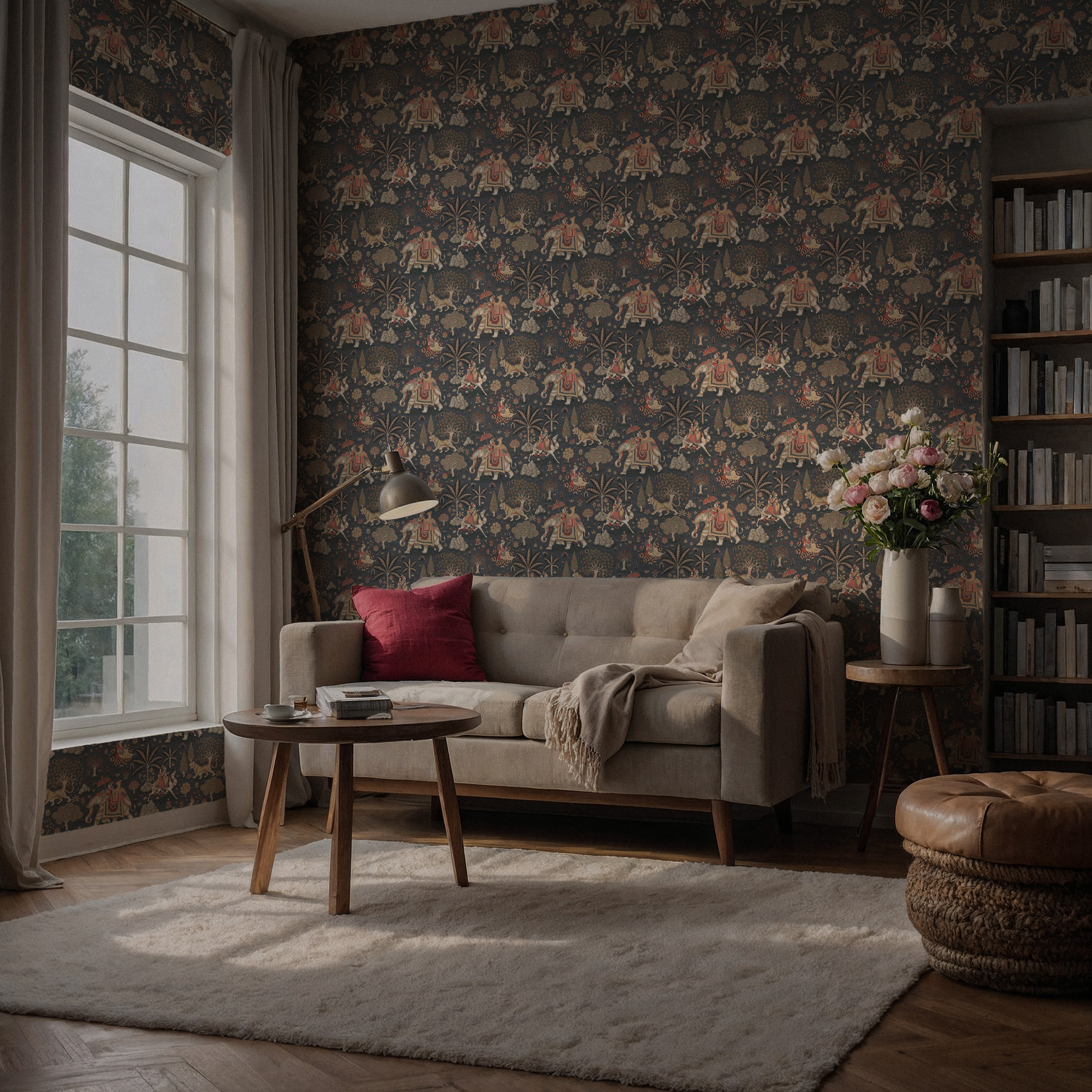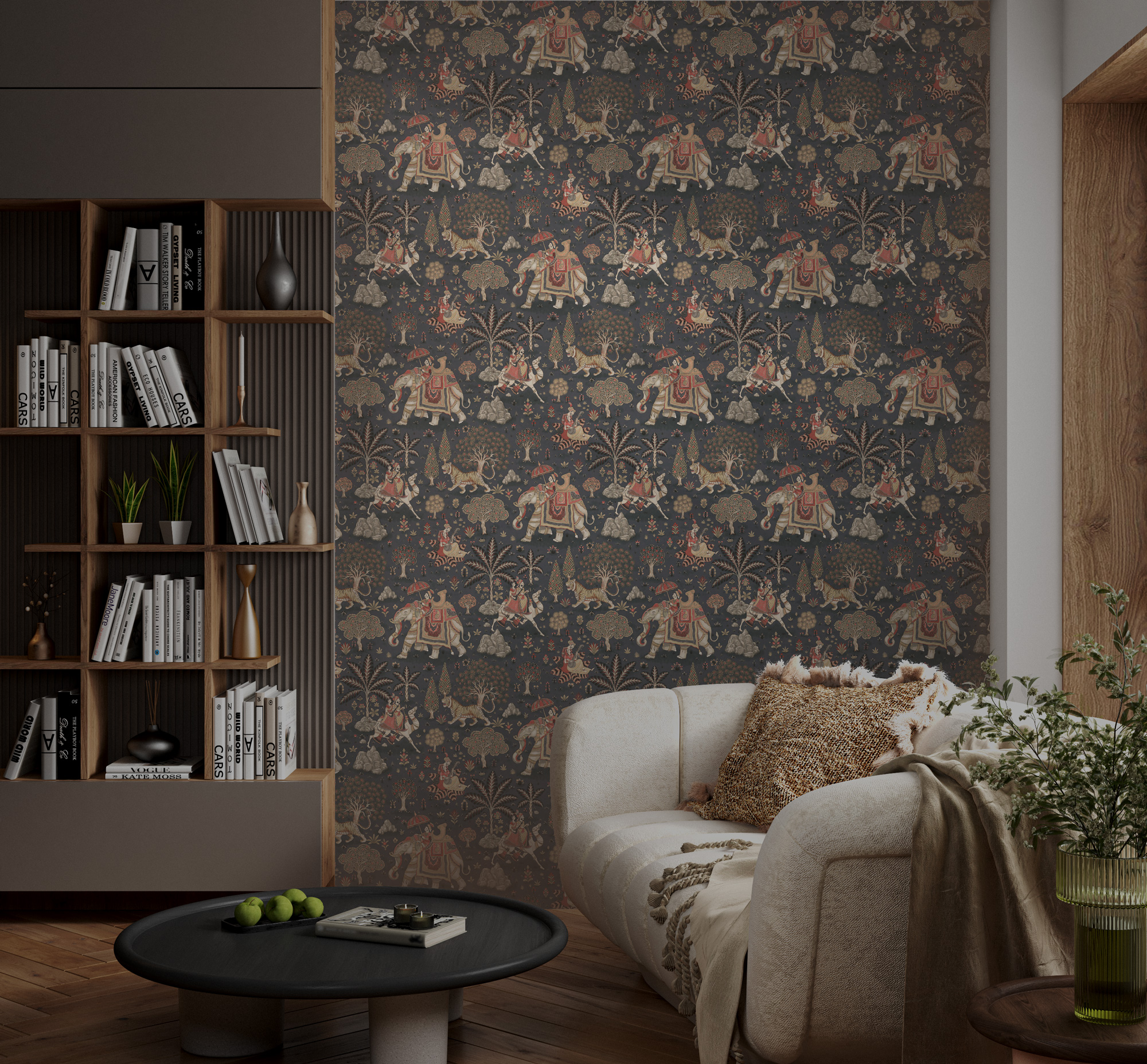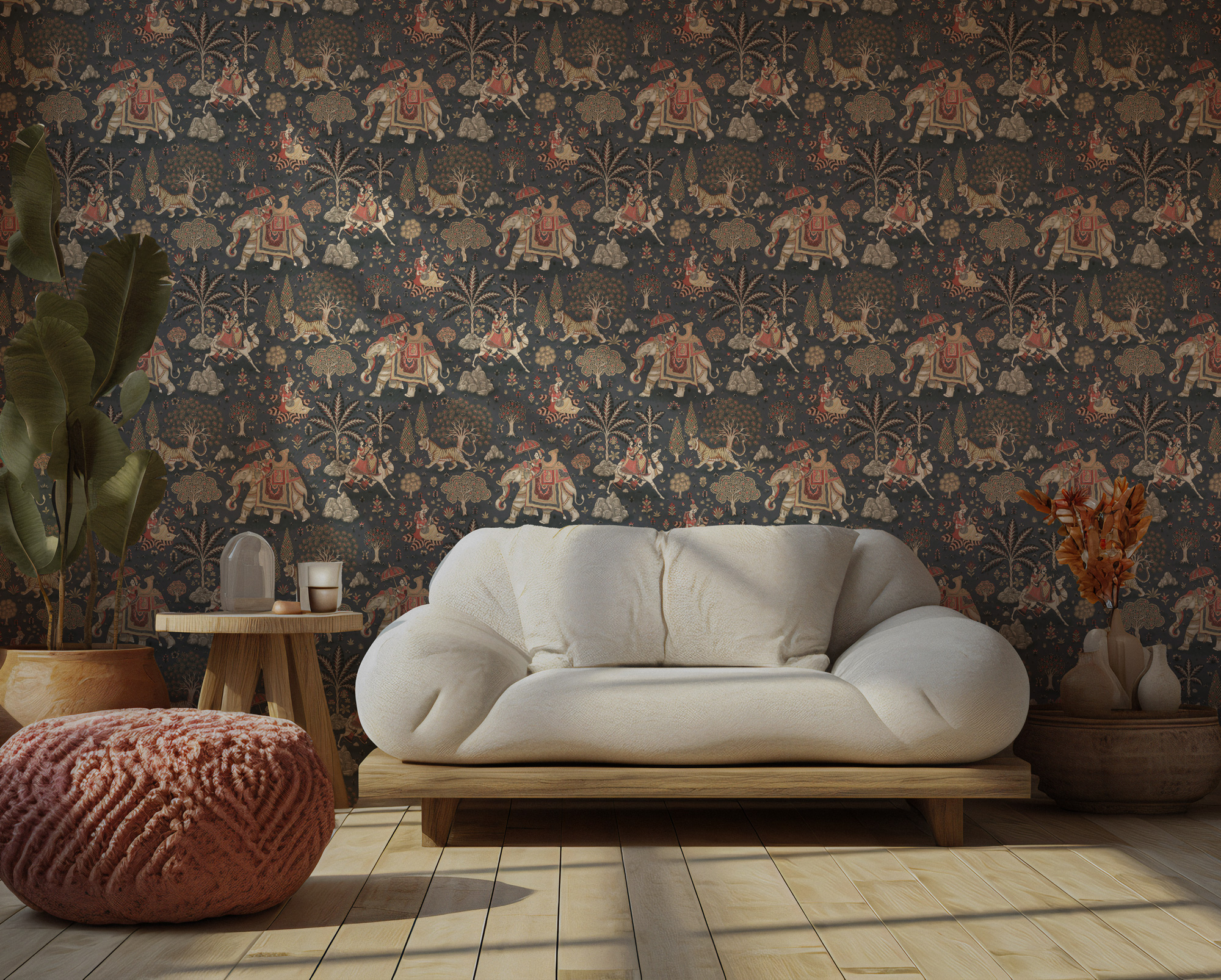 Hindistan Temalı Fil ve Kaplan Tropikal Duvar Kağıdı üretimi, uygulanmasını isteyeceğiniz boyut ve konumuna uygun olarak talepleriniz doğrultusunda size özel imal edilir.