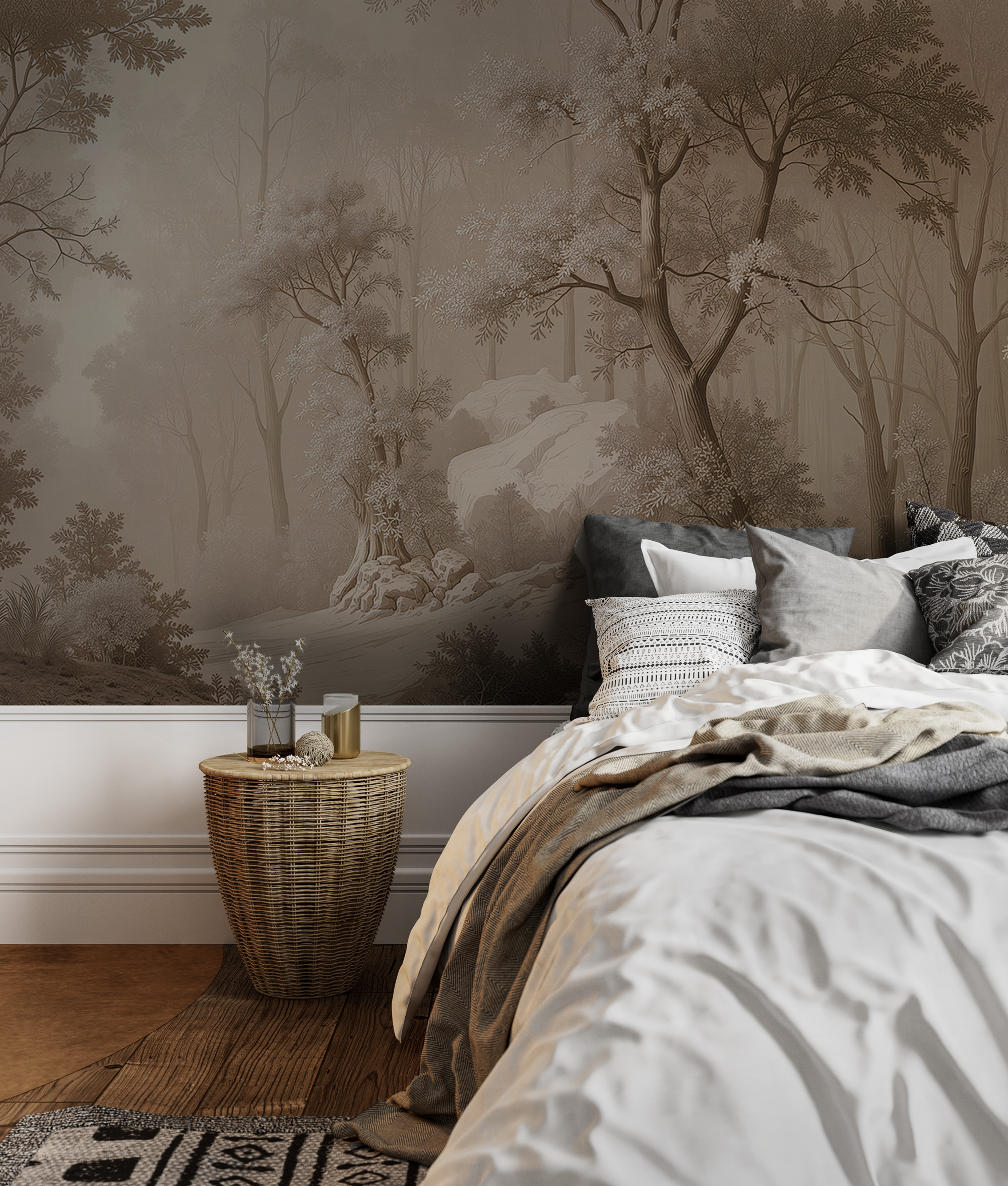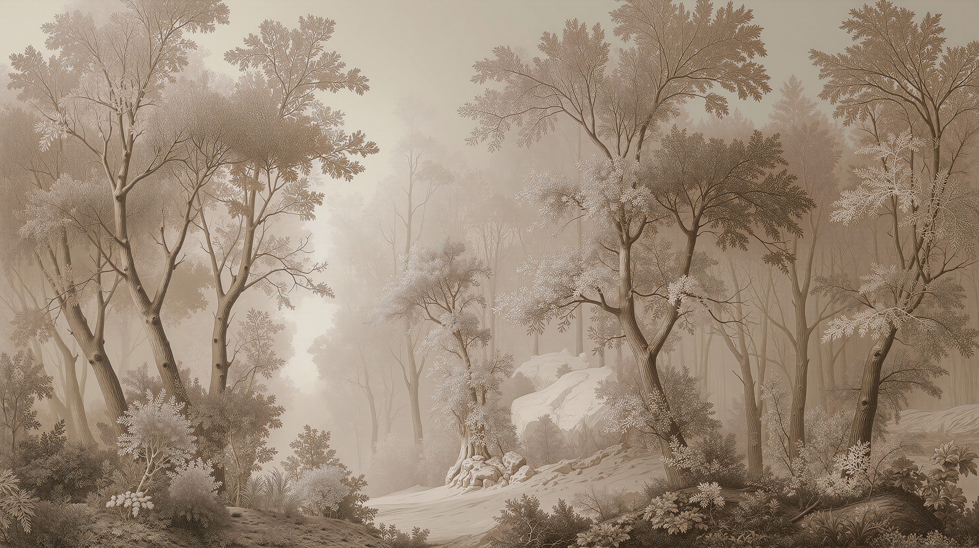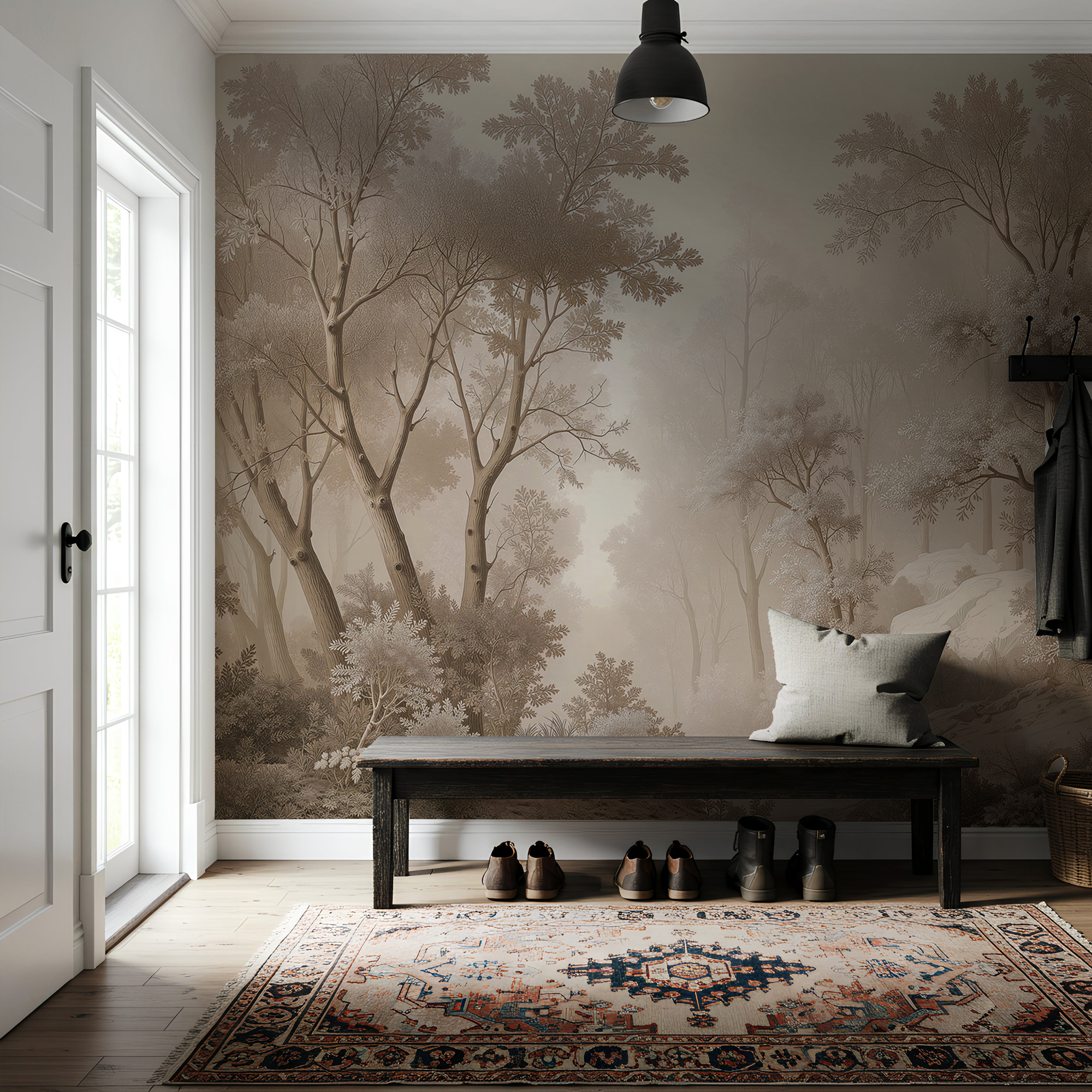 Kahve Tonlarda Sisli Orman Duvar Kağıdı Ürün Bilgisi