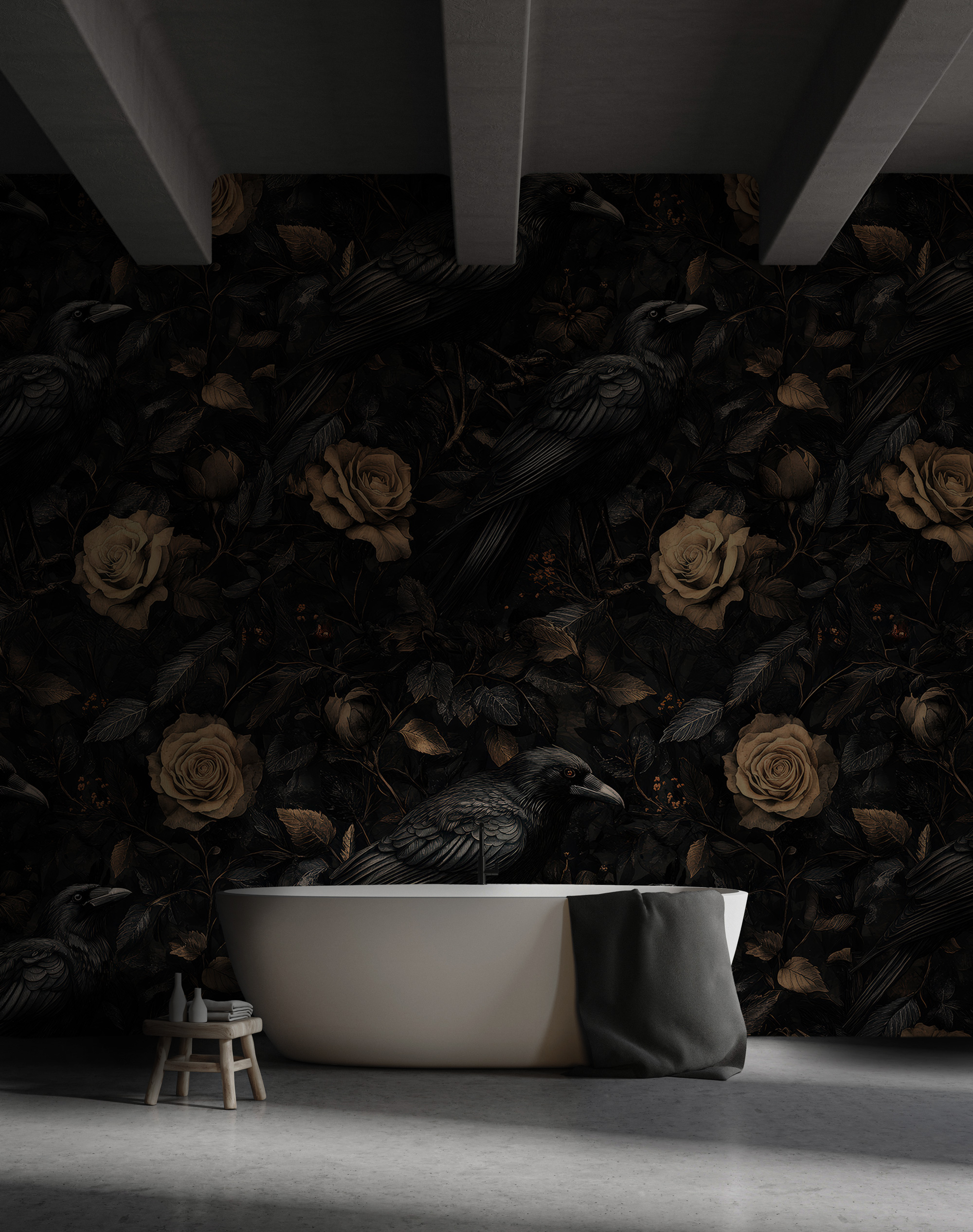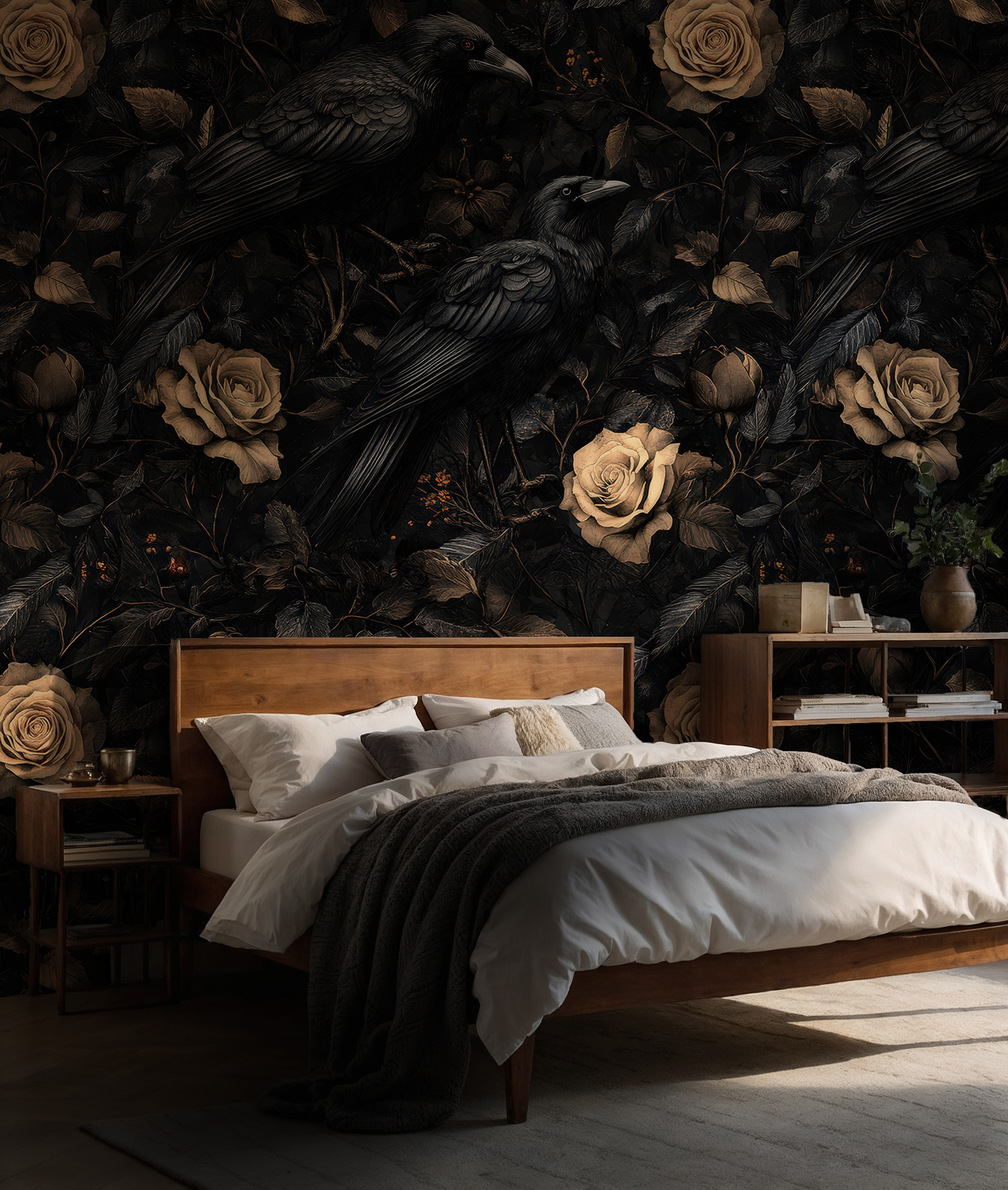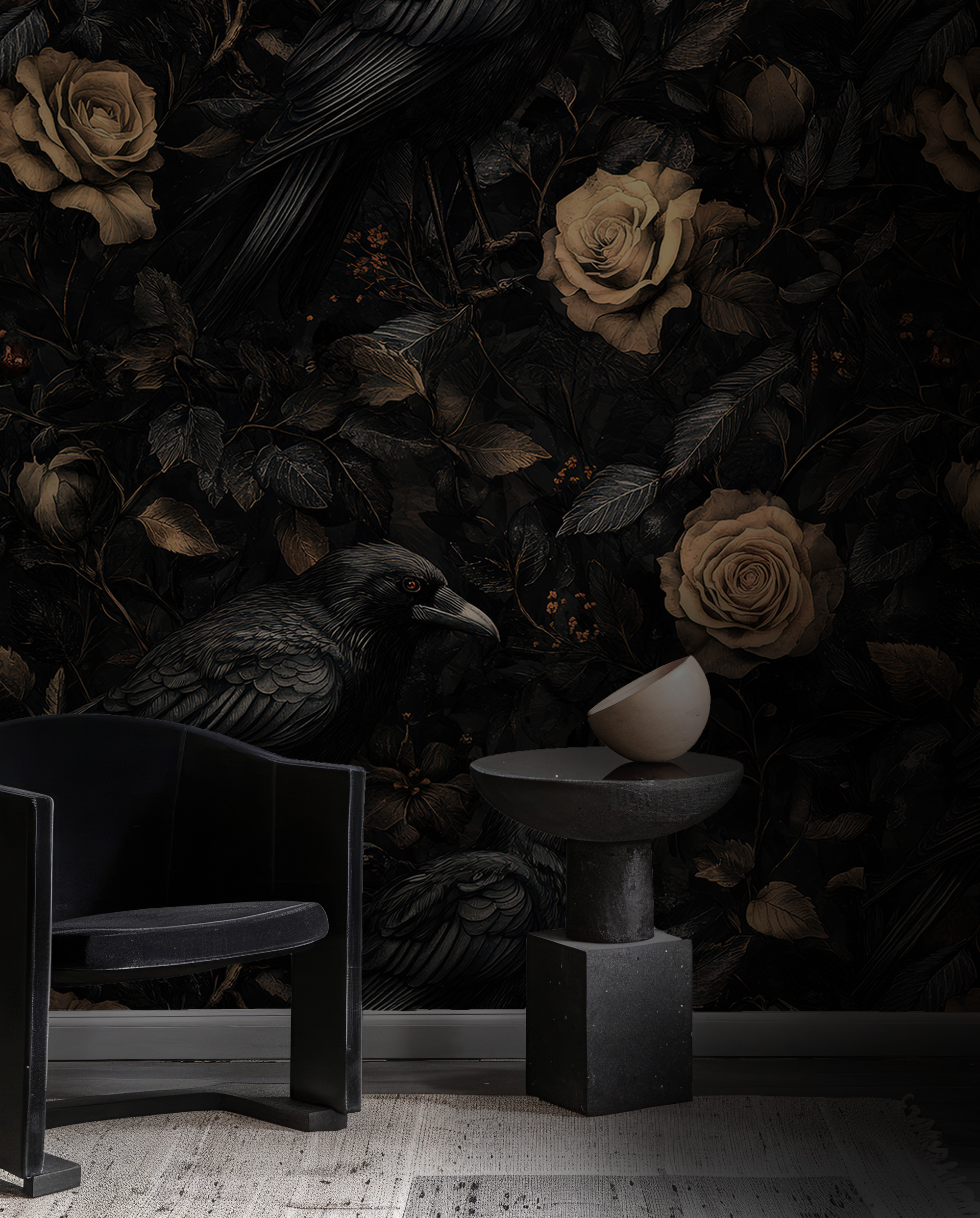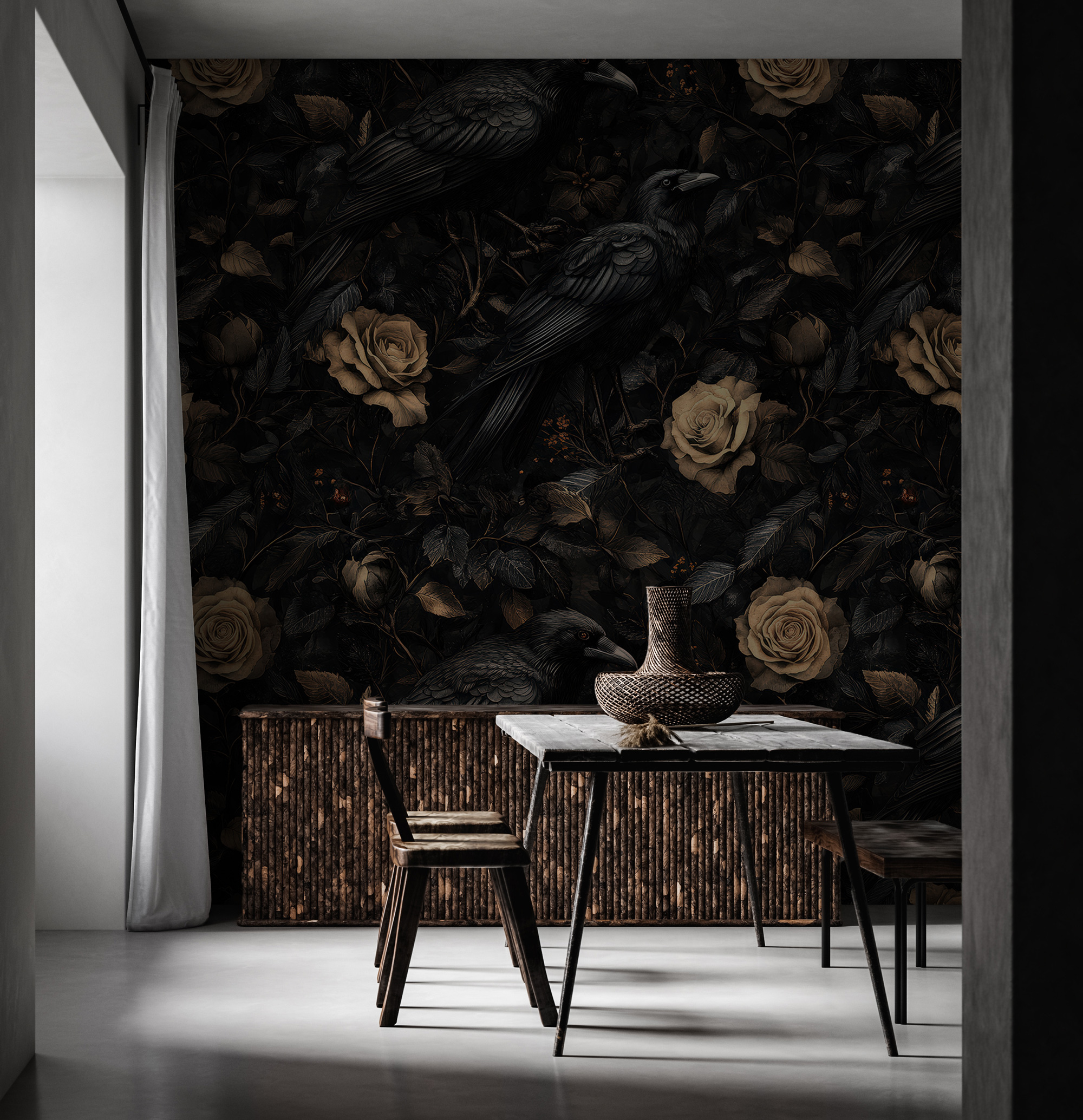 Karanlık Botanik Karga Desenli Duvar Kağıdı Ürün Bilgisi