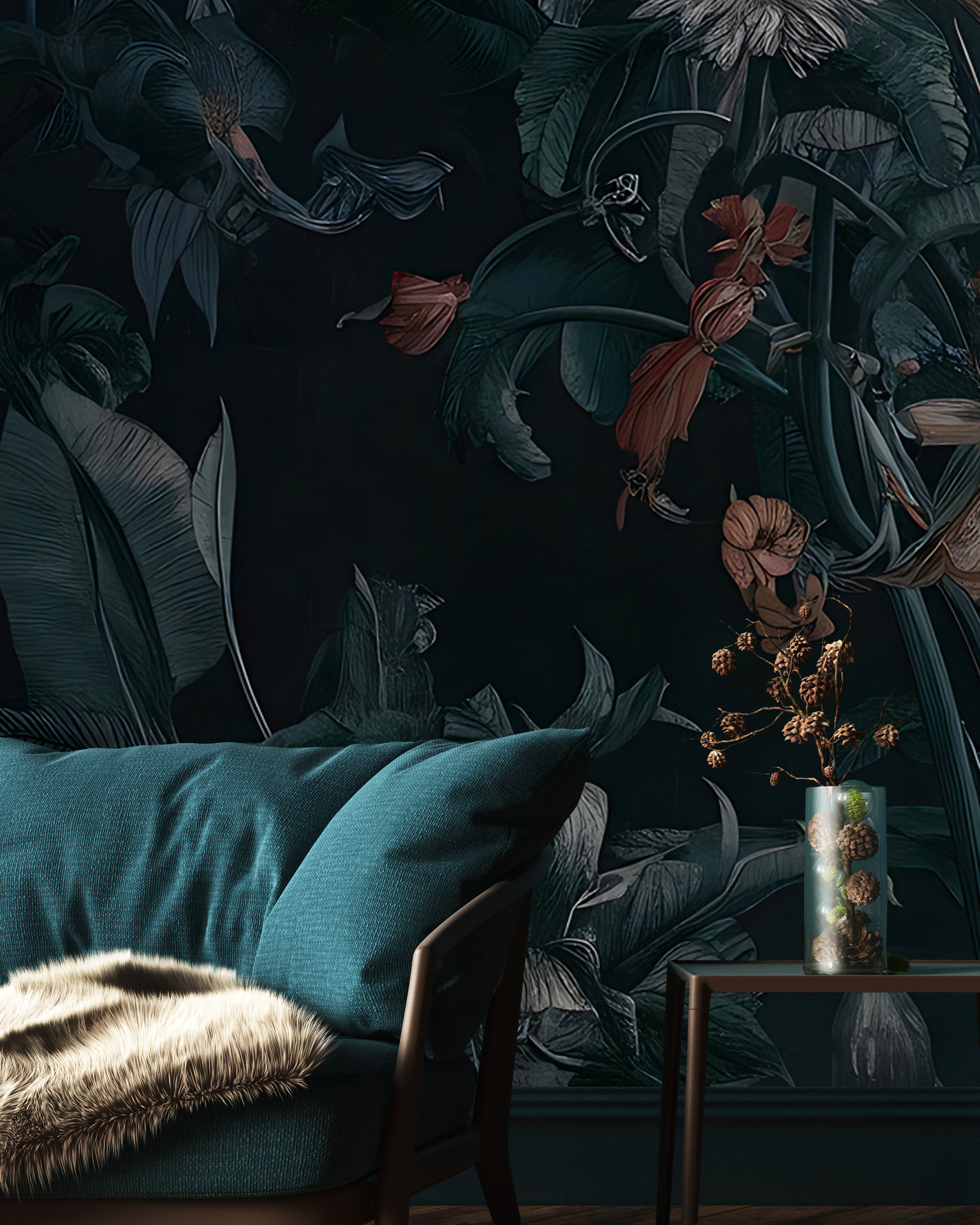 Karanlık Mavi Çiçekler Duvar Kağıdı üretimi, uygulanmasını isteyeceğiniz boyut ve konumuna uygun olarak talepleriniz doğrultusunda size özel imal edilir.