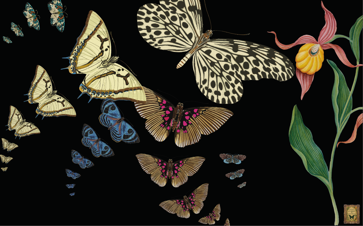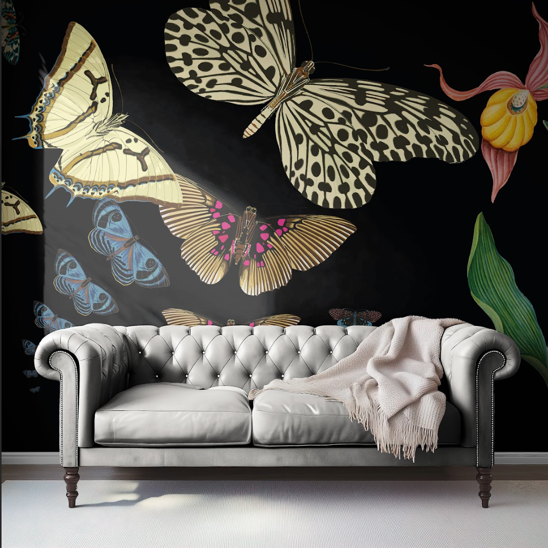 Kelebeğin Bahçesi Orkide Bahçesi Siyah Duvar Kağıdı üretimi , uygulanmasını isteyeceğiniz boyut ve konumuna uygun olarak talepleriniz doğrultusunda size özel imal edilir.