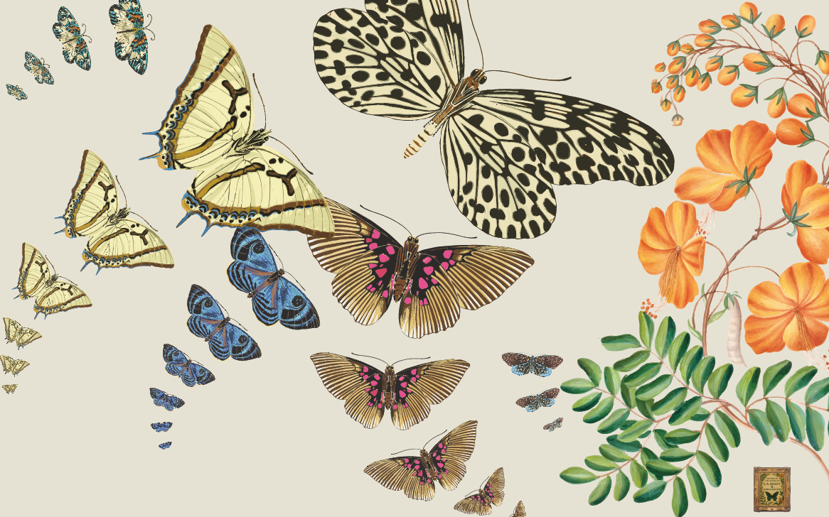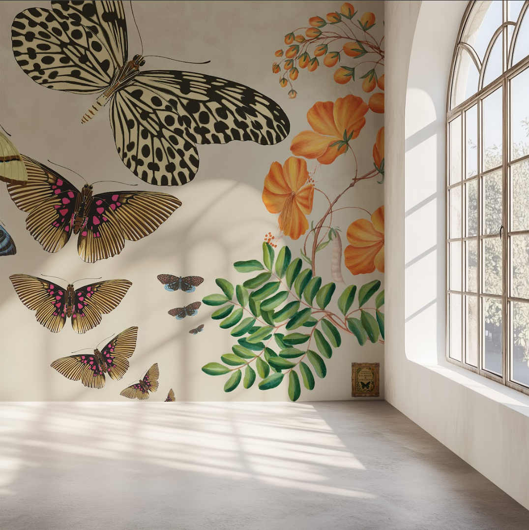 Kelebekler Turuncu Çiçekler Bej Duvar Kağıdı Ürün Bilgisi