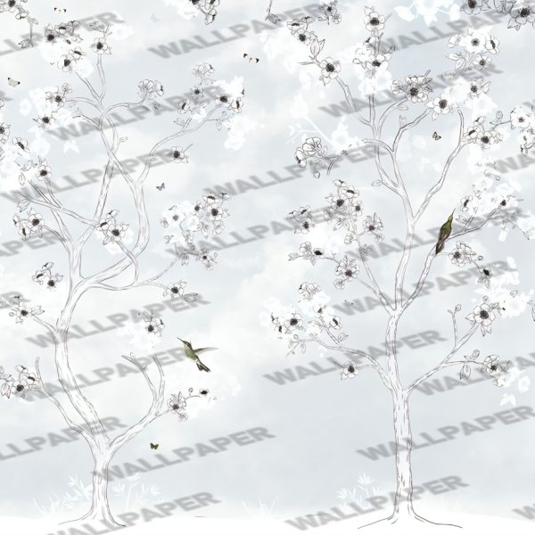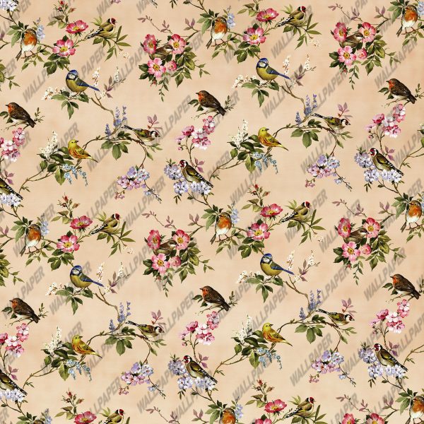 Kuş ve Çiçek Desenli Duvar Kağıdı