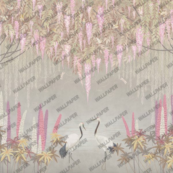 Turna Kuşları ve Çiçekler Duvar Kağıdı