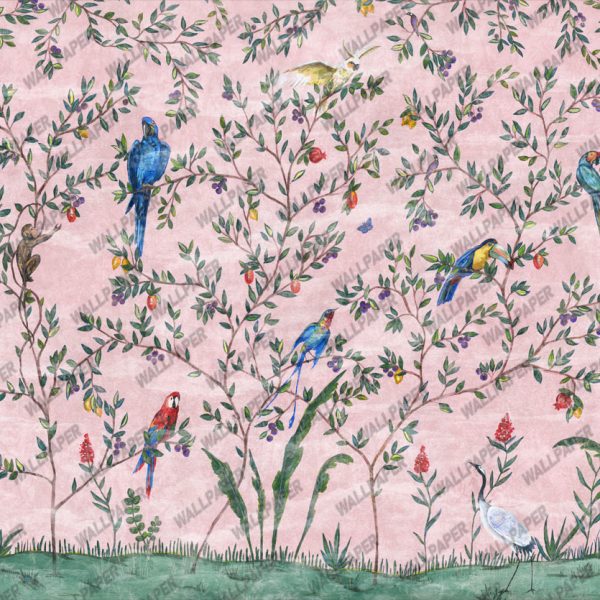 Pembe Zemin Dalın Üzerindeki Kuşlu 3D Duvar Kağıdı