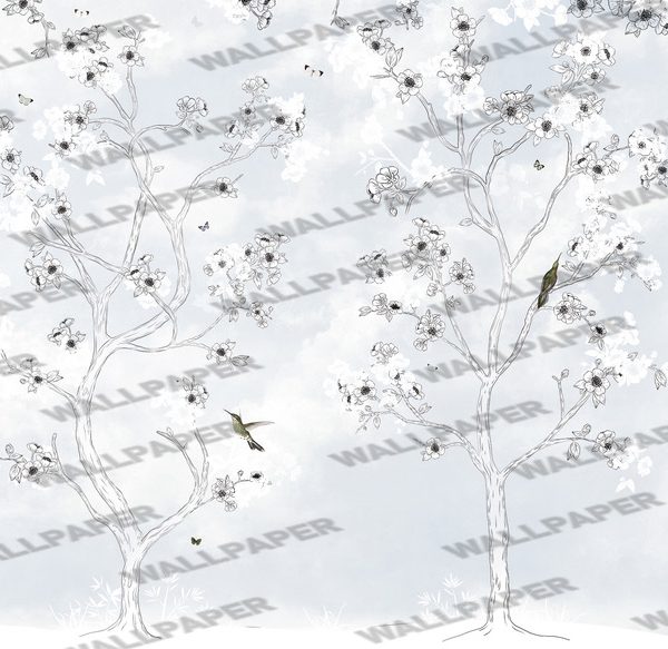 Beyaz Çiçek Ağaçlı Duvar Kağıdı