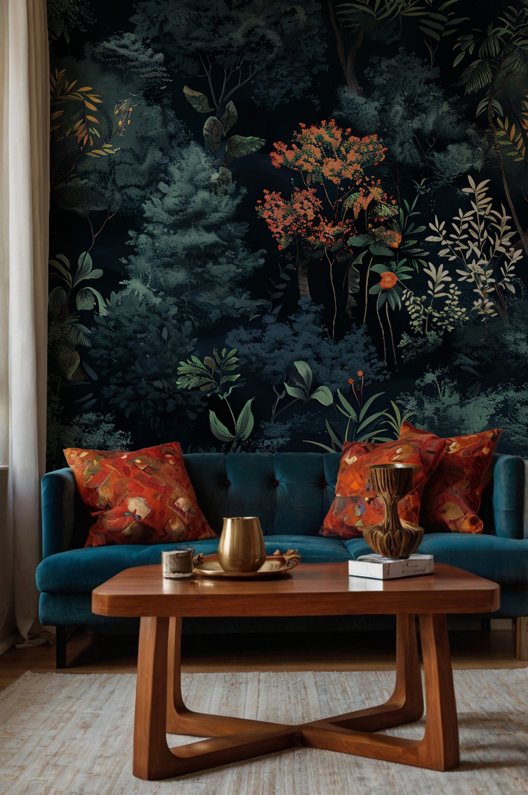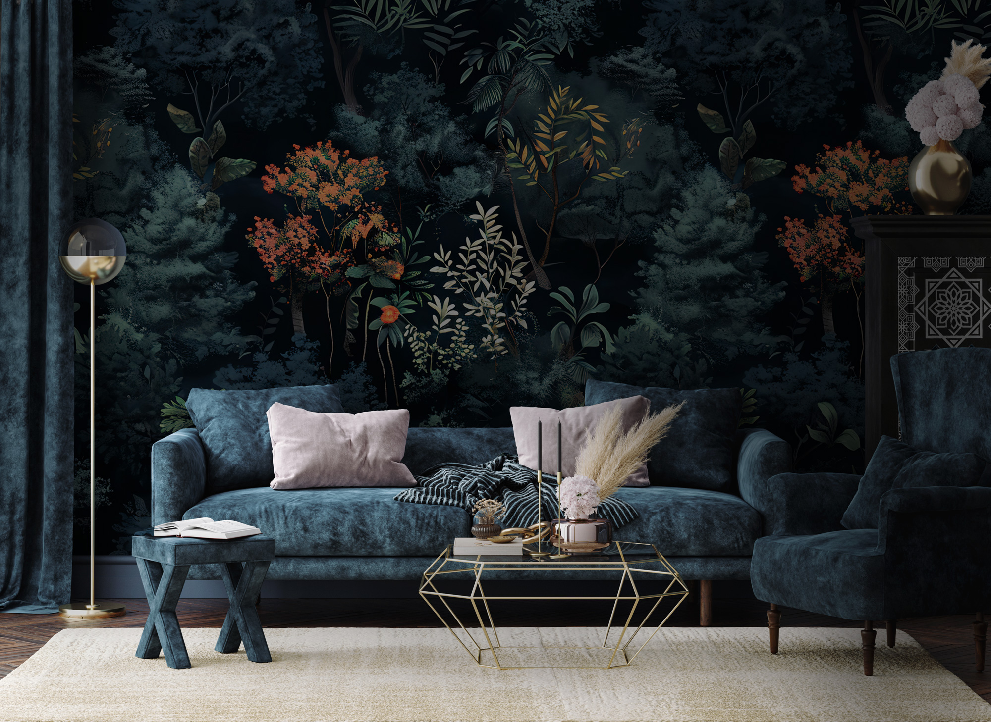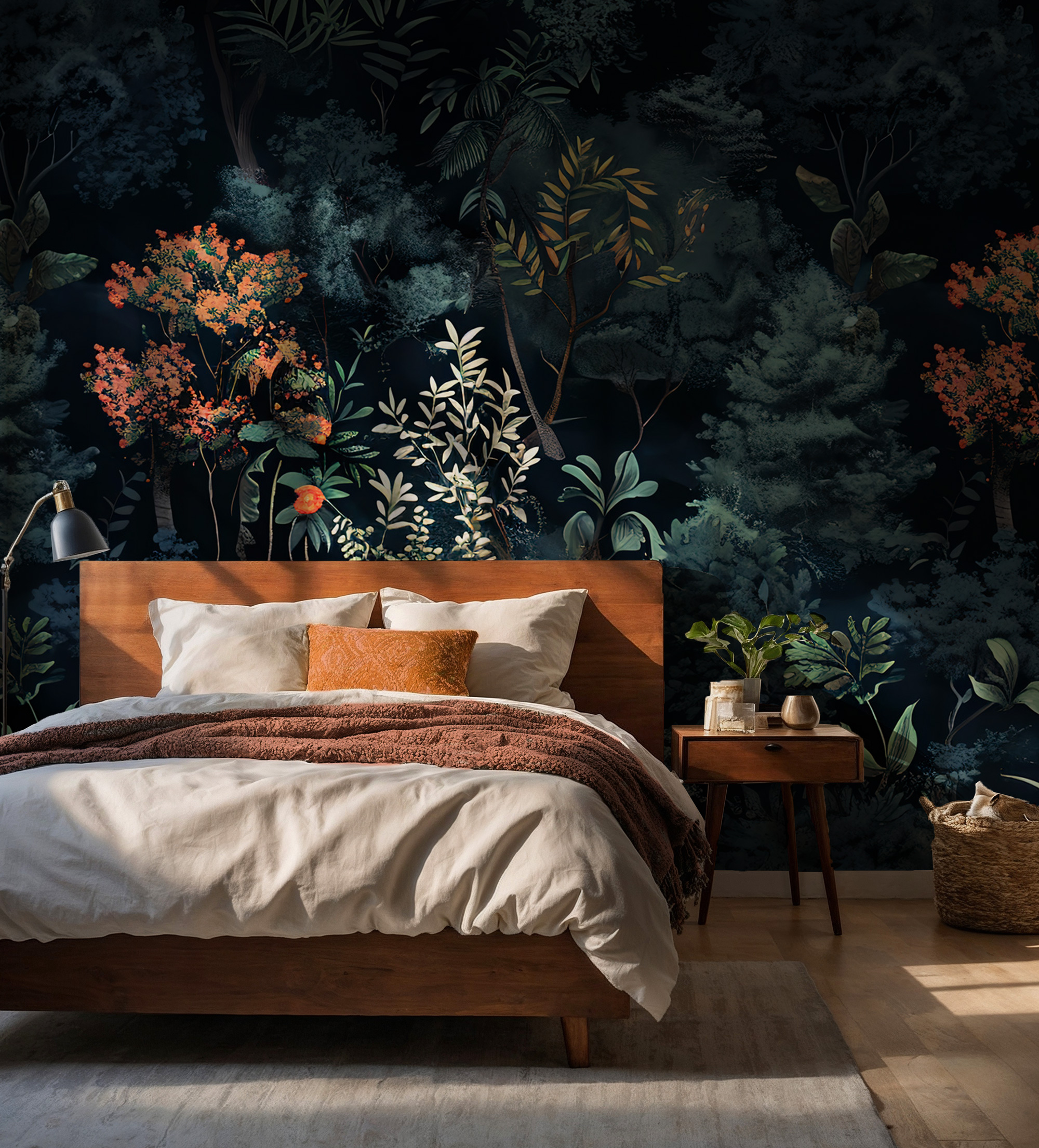 Lacivert Botanik Tropikal Çiçek Duvar Kağıdı üretimi, uygulanmasını isteyeceğiniz boyut ve konumuna uygun olarak talepleriniz doğrultusunda size özel imal edilir.