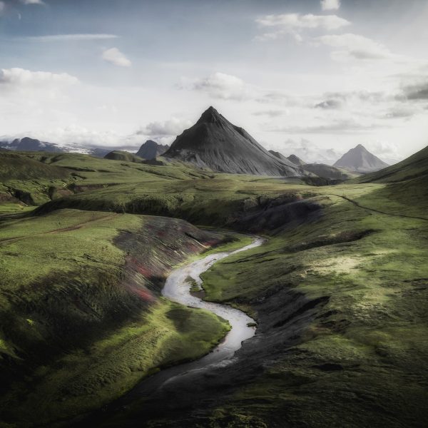 Yeşil Vadide Nehir ve Dağ Manzarası Duvar Kağıdı
