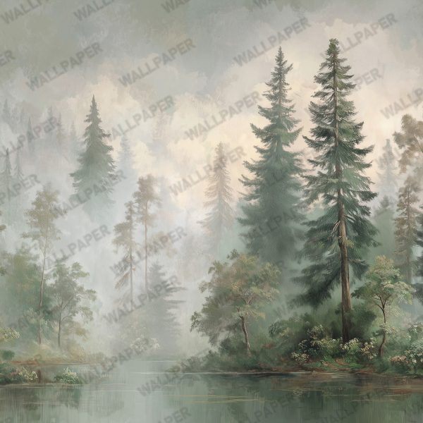 Göl Kenarı Orman Manzarası Duvar Kağıdı