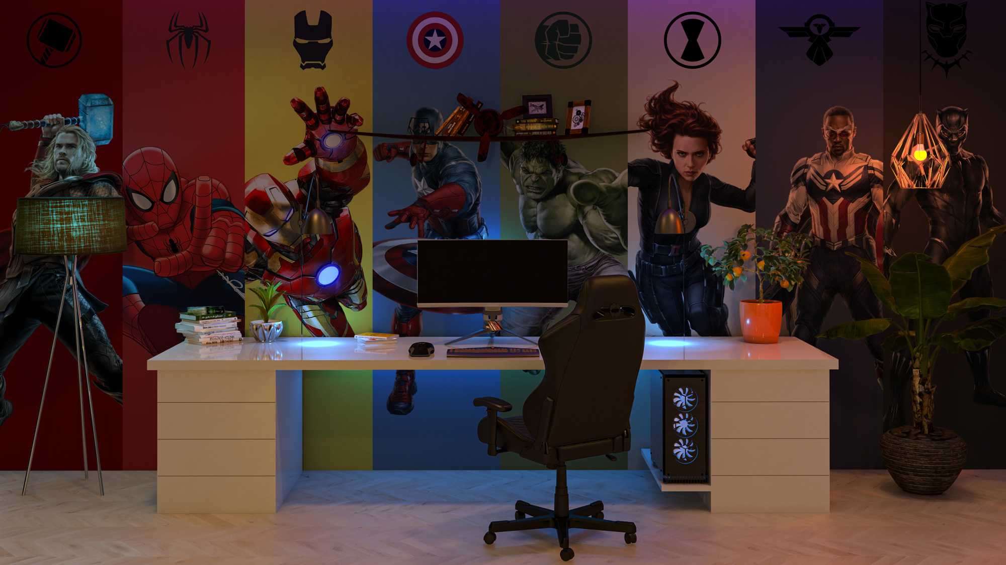 Marvel Kahramanlar Çocuk Odası Duvar Kağıdı üretimi, uygulanmasını isteyeceğiniz boyut ve konumuna uygun olarak talepleriniz doğrultusunda size özel imal edilir.