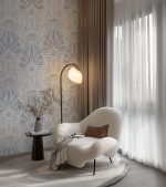 - Mavi Palmiye Desenli Duvar Kağıdı, 100-105cm genişliğinde parçalar halinde üretilmektedir.