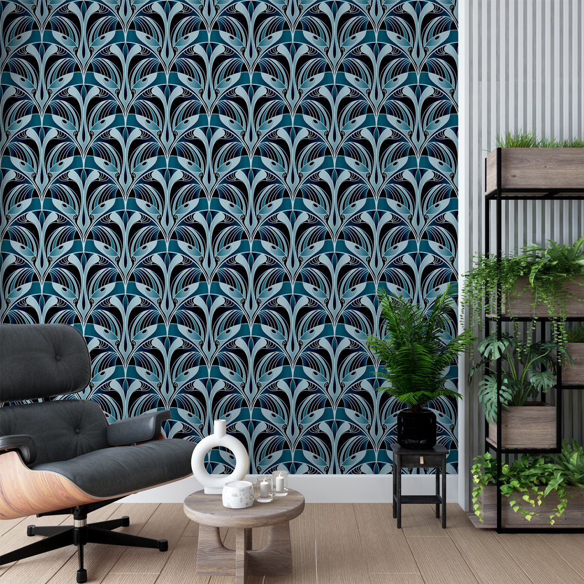Mavi Tonlarda Art Deco Duvar Kağıdı Ürün Bilgisi