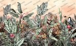 • Maymunlu Tropikal Desenli 3D Duvar Kağıdı, 100-105cm genişliğinde parçalar halinde üretilmektedir.