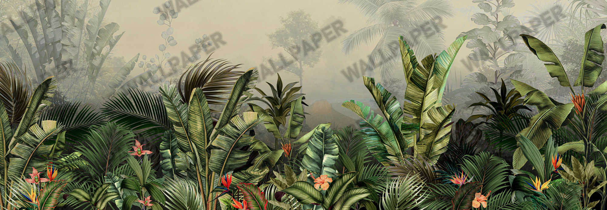 Muz Yaprakları ve Tropikal Orman Duvar Kağıdı , uygulanmasını isteyeceğiniz boyut ve konumuna uygun olarak talepleriniz doğrultusunda size özel imal edilir.