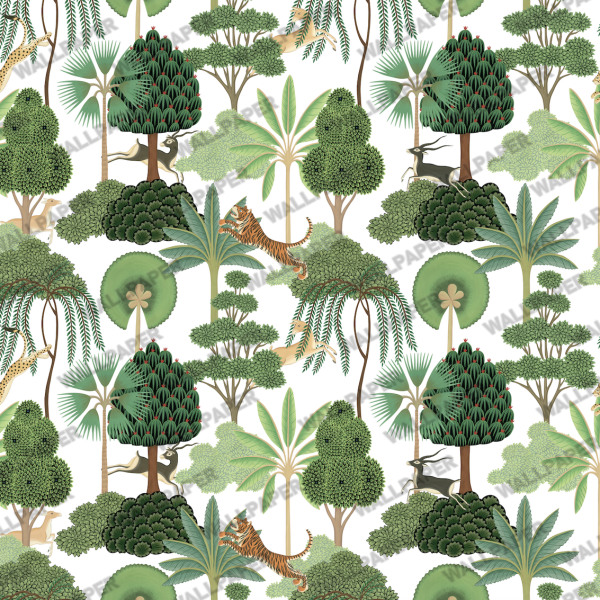 Ağaçlar Ve Hayvanlar Temalı 3D Duvar Kağıdı